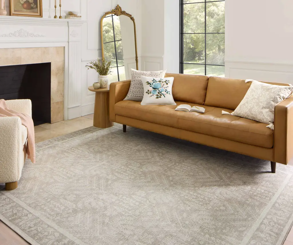 The tiered branches and botanicals of our Bough rug are portrayed in a neutral, tonal color palette. The Maison rug collection is a power-loomed construction with a low pile that will never shed, perfect for adding a delightful accent to even the most heavily-trafficked spaces. Part of our Rifle Paper Co. × Loloi collaboration. The layout and scale of our rugs is adjusted to accommodate each available size, and may be different than what is pictured here. Images of each size are available by hovering over the desired size on our desktop site.