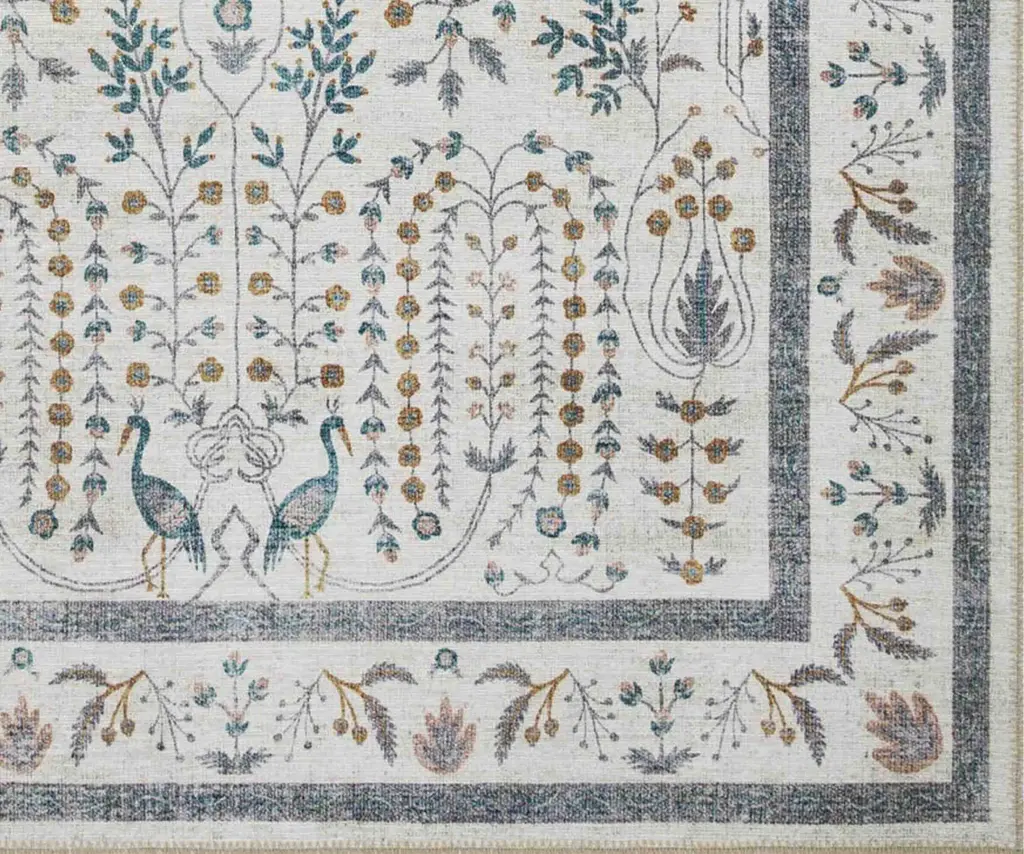 The illustrated vines of the Wisteria rug are elegantly draped, as if hanging from an arbor. Birds and other blooms add playful accents, and a layered border finishes the design. The Maison rug collection is a power-loomed construction with a low pile that will never shed, perfect for adding a delightful accent to even the most heavily-trafficked spaces. Part of our Rifle Paper Co. × Loloi collaboration. The layout and scale of our rugs is adjusted to accommodate each available size, and may be different than what is pictured here. Images of each size are available by hovering over the desired size on our desktop site.