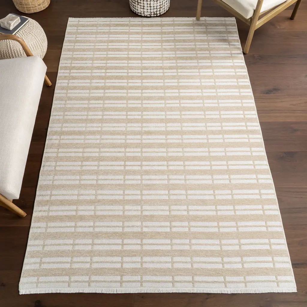 Malaya Striped Reversible Washable Rug | Taupe - 7' 10" X 10'