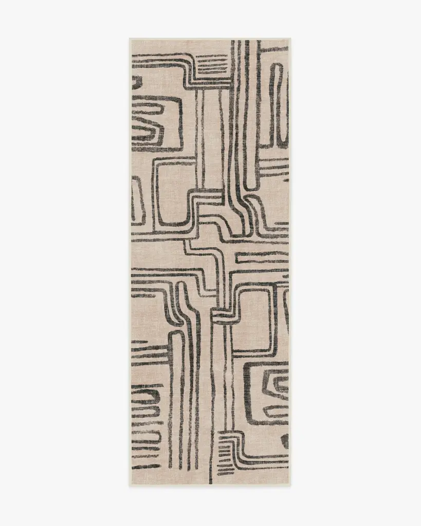Our Malene Barnett Kassena Black & Ivory Rug is artfully designed for gathering. Inspired by Malene Barnett’s bi-color pottery, this maze-like design draws on patterns found in the mud architecture of the Kassena people. Painterly and expressive brushstrokes evoke a sense of movement and fluidity, while maintaining an essence of simplicity. The charcoal black linework grounds the design against an ivory background, giving the rug cultural richness and contemporary style. Water-resistant, stain-resistant, and machine-washable. Rug colors may vary slightly according to your device and the lighting in your space.