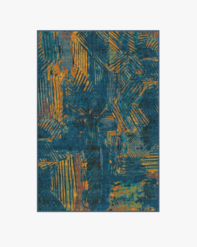 Show off your artistic expression with our Malene Barnett Sgraffito Royal Blue Rug. Inspired by the painting technique known as sgraffito, this abstract design is crafted from strokes of layered colors, intricately carved into each other to create a dynamic visual composition. The painterly lines are skillfully scratched away and blended together, giving it an energetic appeal. Its dynamic color palette combines hints of turquoise, smoky blue, soft red, orange, and lime green against a royal blue background. Water-resistant, stain-resistant, and machine-washable. Rug colors may vary slightly according to your device and the lighting in your space.