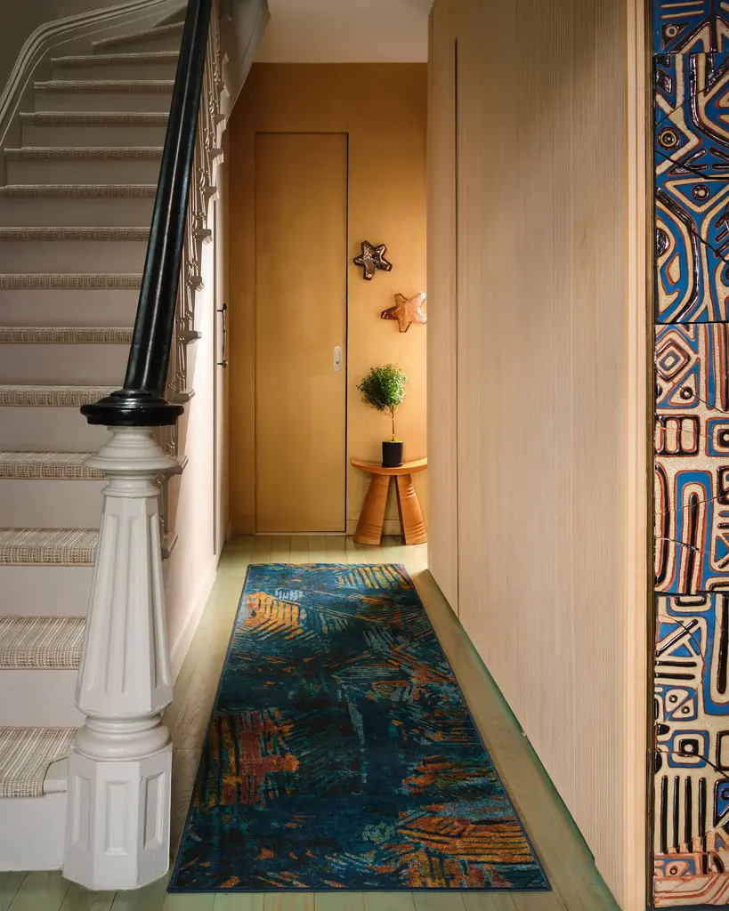 Show off your artistic expression with our Malene Barnett Sgraffito Royal Blue Rug. Inspired by the painting technique known as sgraffito, this abstract design is crafted from strokes of layered colors, intricately carved into each other to create a dynamic visual composition. The painterly lines are skillfully scratched away and blended together, giving it an energetic appeal. Its dynamic color palette combines hints of turquoise, smoky blue, soft red, orange, and lime green against a royal blue background. Water-resistant, stain-resistant, and machine-washable. Rug colors may vary slightly according to your device and the lighting in your space.