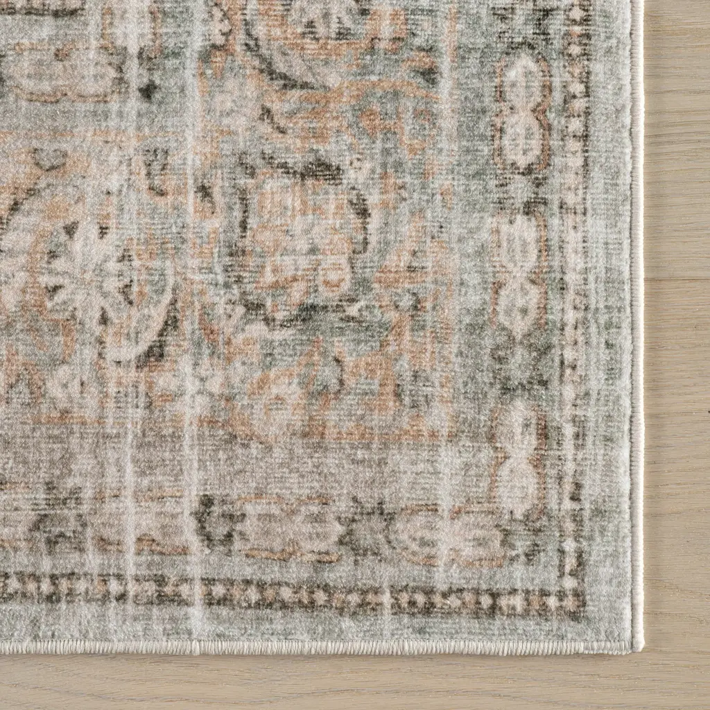 Malie Bordered Traditional Washable Rug | Beige - 5' X 8'