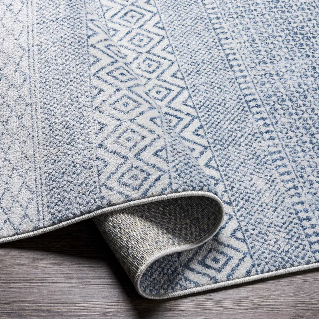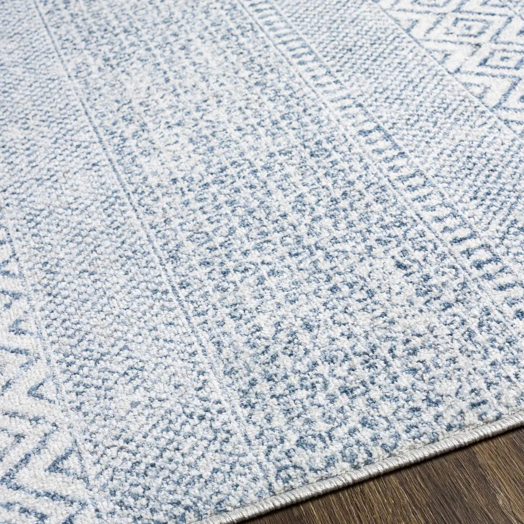 Collection: Malkara Colors: Cream, Denim, Pale Blue Construction: Machine Woven Material: 100% Polypropylene Pile: Medium Pile Pile Height: 0.24" Styles: Transitional,Bohemian Made In: Turkey Thickness: 0.35" Price Range: $$$$$ (Most Affordable)