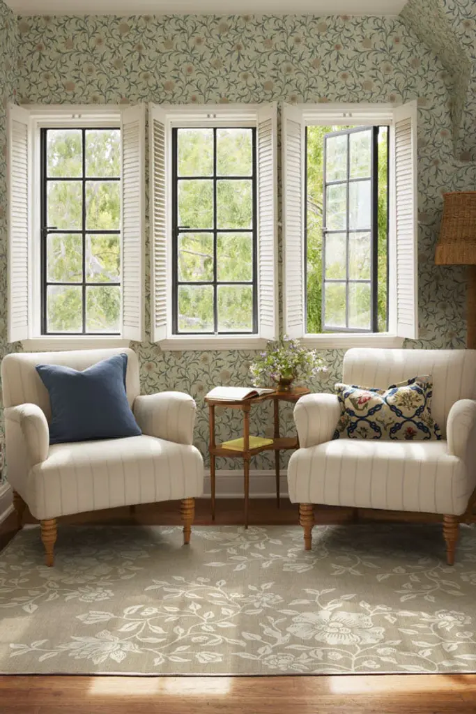 A modern spin on the classic Mallow wallpaper, the Morris & Co. Mallow Flower Natural Stone Rug brings playful hope to every room. We reimagined Kate Faulkner's 1879 design to bring the trailing, organic beauty to the floor. This delicate pattern uses warm neutrals like beige and ivory to lighten and brighten any space. Water-resistant, stain-resistant, and machine-washable. Rug colors may vary slightly according to your device and the lighting in your space.