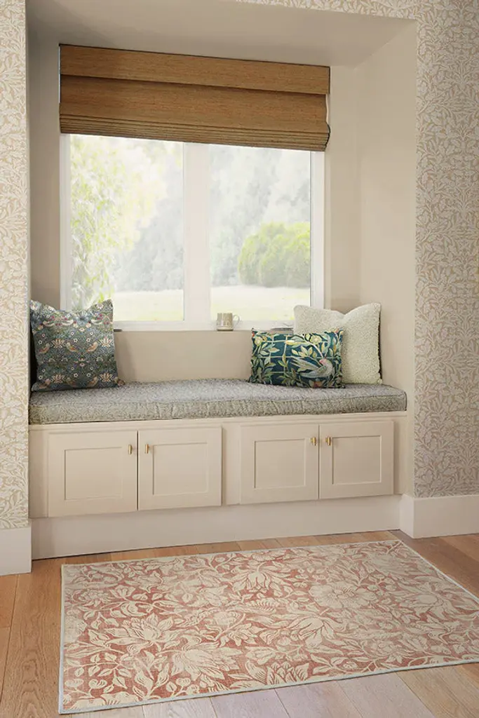 Invite joy in with the Morris & Co. Mallow Rust Rug. This timeless floral repeat pattern adds a touch of whimsical warmth to any room. A contemporary coloring of Kate Faulkner's 1879 design, this delicate pattern uses textured coral and soft cream to highlight the organic intricacies of the design. Water-resistant, stain-resistant, and machine-washable. Rug colors may vary slightly according to your device and the lighting in your space.