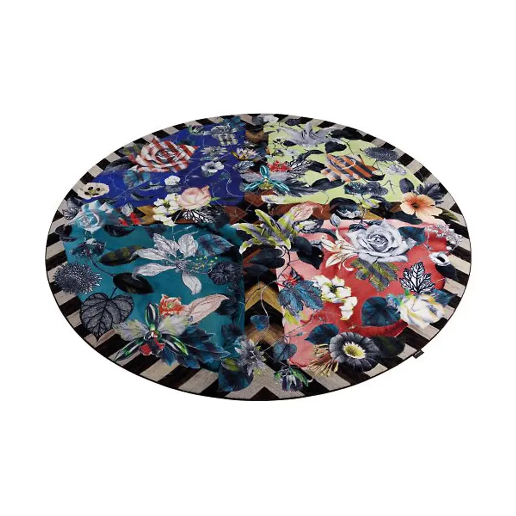 Lively and unique, Moooi's Malmaison Round Rug design comes from Maison Christian Lacroix. Monochrome flowers are adorned with overlaid stripes of various colors, all framed beautifully by a striped border. With several colors to choose from as well as being available in either polyamide or tufted wool construction, it's easy to find a place for this eccentric piece in any home.