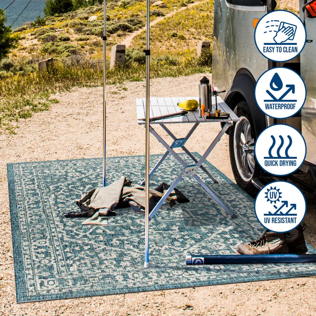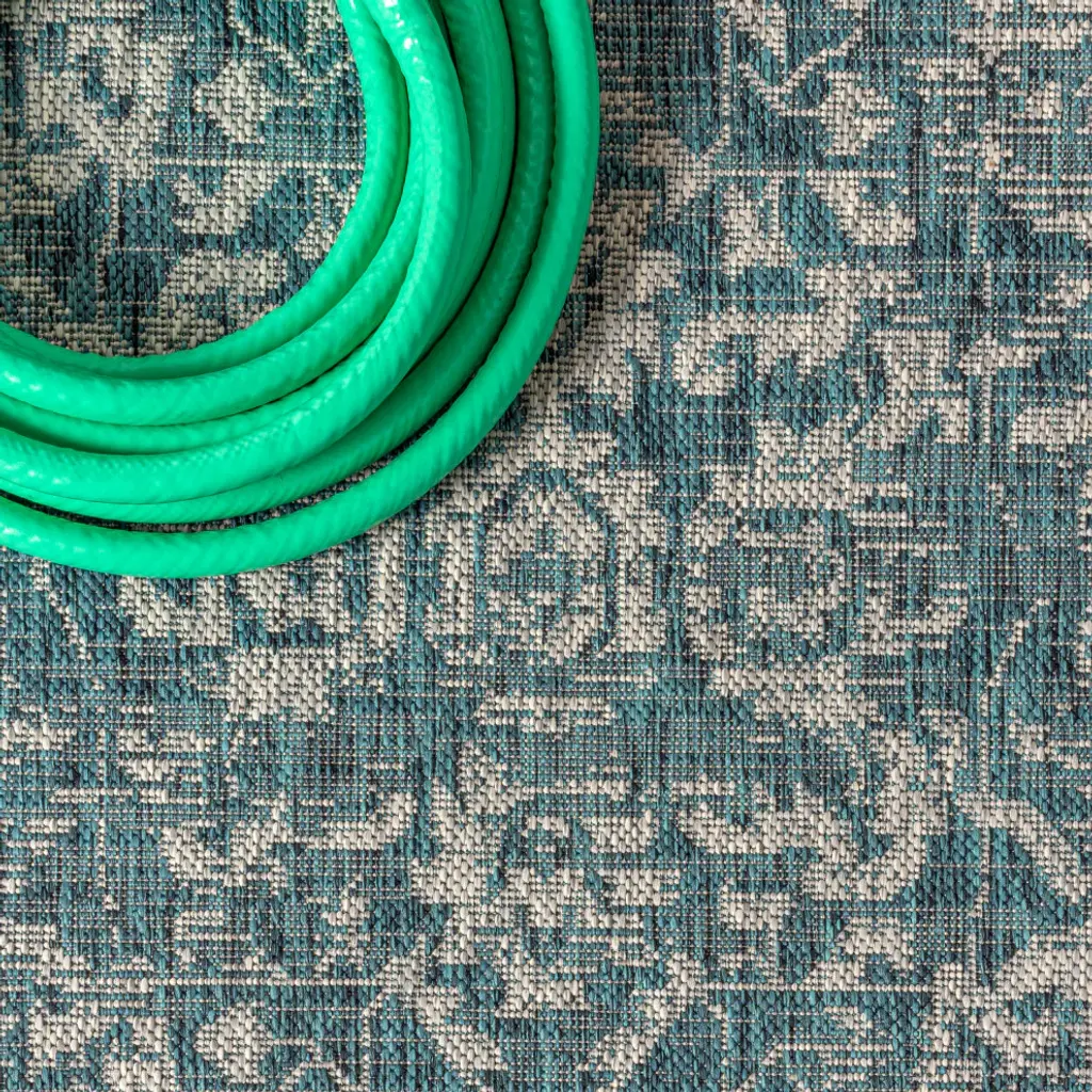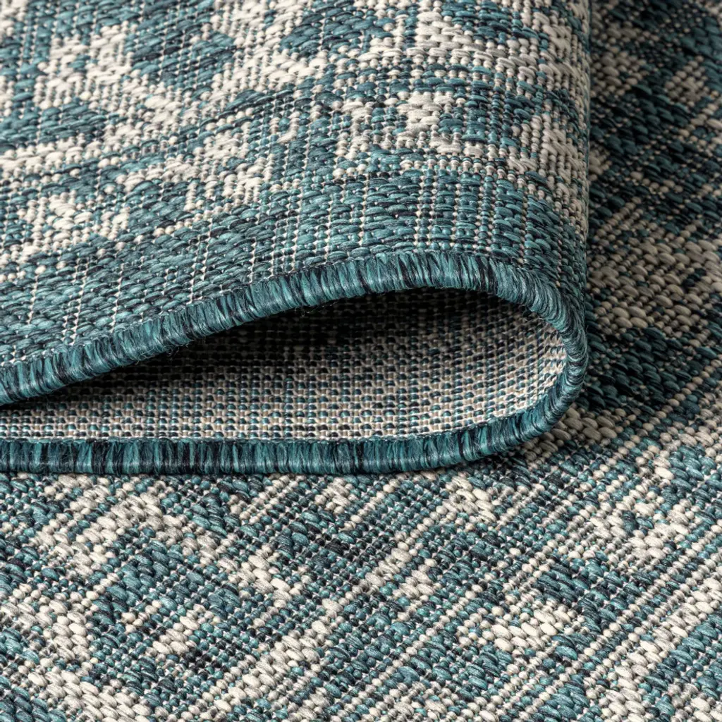 This colorful medallion rug adds rich Bohemian style to an outdoor porch or patio. Varied tones of deep teal and blue mingled with a light gray pattern give this rug a hand-woven, vintage vibe. The flatweave design is great for high-traffic spaces indoors too. Features:• Flat-weave construction of 100% polypropylene• Teal and gray with a handwoven mingled texture• Water resistance with 0.19" pile• 100% Polypropylene• No backing, use of rug pad is recommended (sold separately)• Power-loomed in Turkey• Actual Dimension: 2 ft. 2 in. X 10 ft.• Color: Teal/Gray• Thickness measures: 0.19 in.• Available in multiple sizes and/or colorsRug Care:• Durable and easy-care - just sweep or hose down with mild soap and water• Packing and shipping may cause temporary creases in rugs, which will flatten out after a week on the floor; to expedite the process, try back-rolling your rug before laying it down, and then allow ample time for the remaining creases to relax• Please Note: Due to differences in monitors, some rug colors may vary slightly. Lengths and widths may vary from the published dimensions. Patterns may vary slightly according to the shape and size selected.About us:Style your floors with JONATHAN Y. By combining fine craftsmanship and design, this New York creative studio is bringing fashion to your floors. The collection mixes sustainable organic materials, vibrant colors and trend-worthy styles to create JONATHAN Y''s distinctive catalog of rugs.