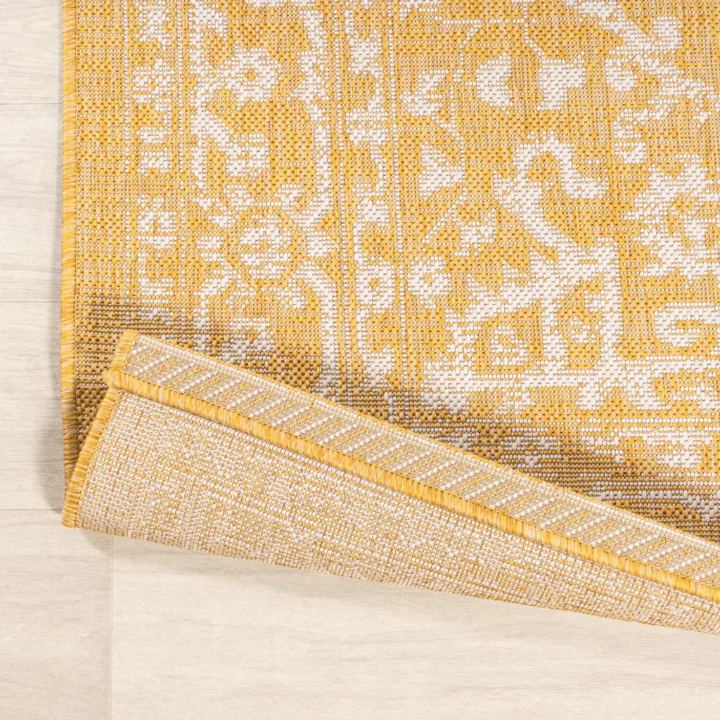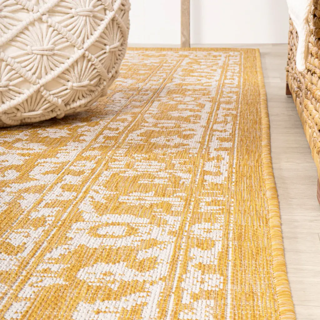 This colorful medallion rug adds rich Bohemian style to an outdoor porch or patio. Varied tones of soft green mingled with a cream pattern give this rug a hand-woven, vintage vibe. The flatweave design is great for high-traffic spaces indoors too.Features:• Water resistance with 0.19" pile• Soft green and cream with a handwoven mingled texture• Flat-weave construction of 100% polypropylene• 100% Polypropylene• No backing, use of rug pad is recommended (sold separately)• Power Loomed in Turkey• Actual Dimension: 2 ft. 2 in. X 10 ft.• Color: Yellow/Cream• Thickness measures: 0.19 in.• Available in multiple sizes and/or colorsRug Care:• Vacuum regularly and spot clean as needed; avoid direct and continuous exposure to sunlight; use brushless vacuum; remove spills immediately; if liquid, blot with clean, undyed cloth by pressing firmly around the spill to absorb as much as possible; for hard to remove stains, professional rug cleaning is recommended; store in a dry, well ventilated area and rotate for consistent wear• Packing and shipping may cause temporary creases in rugs, which will flatten out after a week on the floor; to expedite the process, try back-rolling your rug before laying it down, and then allow ample time for the remaining creases to relax• Please Note: Due to differences in monitors, some rug colors may vary slightly. Lengths and widths may vary from the published dimensions. Patterns may vary slightly according to shape and size selected.About us:Style your floors with JONATHAN Y. By combining fine craftsmanship and design, this New York creative studio is bringing fashion to your floors. The collection mixes sustainable organic materials, vibrant colors and trend worthy styles to create JONATHAN Y''s distinctive catalog of rugs.