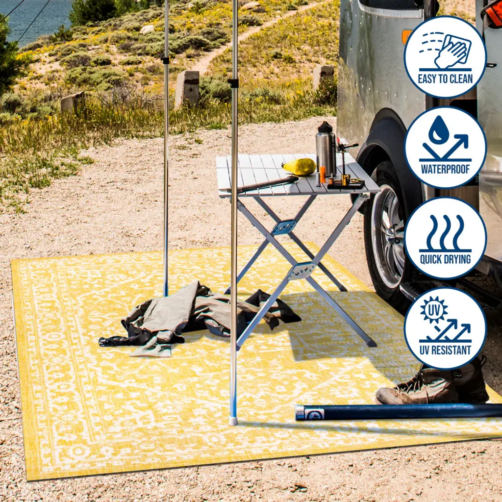 This colorful medallion rug adds rich Bohemian style to an outdoor porch or patio. Varied tones of soft green mingled with a cream pattern give this rug a hand-woven, vintage vibe. The flatweave design is great for high-traffic spaces indoors too.Features:• Water resistance with 0.19" pile• Soft green and cream with a handwoven mingled texture• Flat-weave construction of 100% polypropylene• 100% Polypropylene• No backing, use of rug pad is recommended (sold separately)• Power Loomed in Turkey• Actual Dimension: 2 ft. 2 in. x 8 ft.• Color: Yellow/Cream• Thickness measures: 0.19 in.• Available in multiple sizes and/or colorsRug Care:• Vacuum regularly and spot clean as needed; avoid direct and continuous exposure to sunlight; use brushless vacuum; remove spills immediately; if liquid, blot with clean, undyed cloth by pressing firmly around the spill to absorb as much as possible; for hard to remove stains, professional rug cleaning is recommended; store in a dry, well ventilated area and rotate for consistent wear• Packing and shipping may cause temporary creases in rugs, which will flatten out after a week on the floor; to expedite the process, try back-rolling your rug before laying it down, and then allow ample time for the remaining creases to relax• Please Note: Due to differences in monitors, some rug colors may vary slightly. Lengths and widths may vary from the published dimensions. Patterns may vary slightly according to shape and size selected.About us:Style your floors with JONATHAN Y. By combining fine craftsmanship and design, this New York creative studio is bringing fashion to your floors. The collection mixes sustainable organic materials, vibrant colors and trend worthy styles to create JONATHAN Y''s distinctive catalog of rugs.