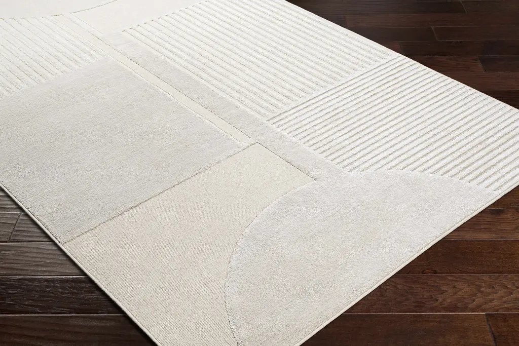 Collection: Manalad Colors: Cream, Beige Construction: Machine Woven Material: 51% Viscose, 49% Wool Pile: Medium Pile Pile Height: 0.24" Styles: Contemporary Made In: Turkey Thickness: 0.31" Price Range: $$$$$ (Most Affordable)
