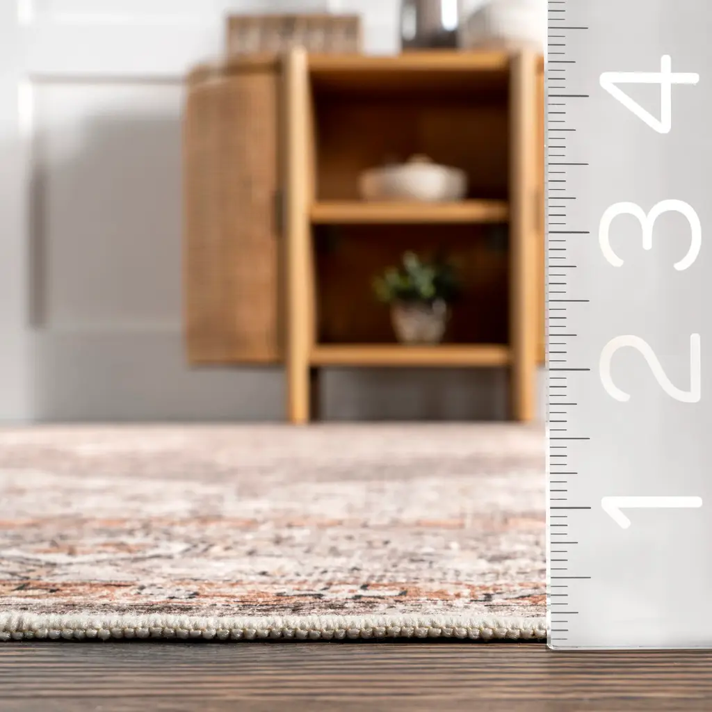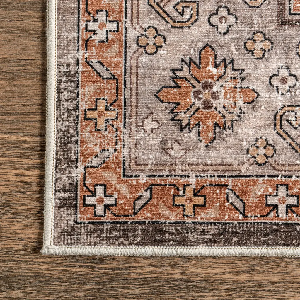 Mandi Vintage Floral Spill Proof Washable Rug | Brown - 4' X 6'