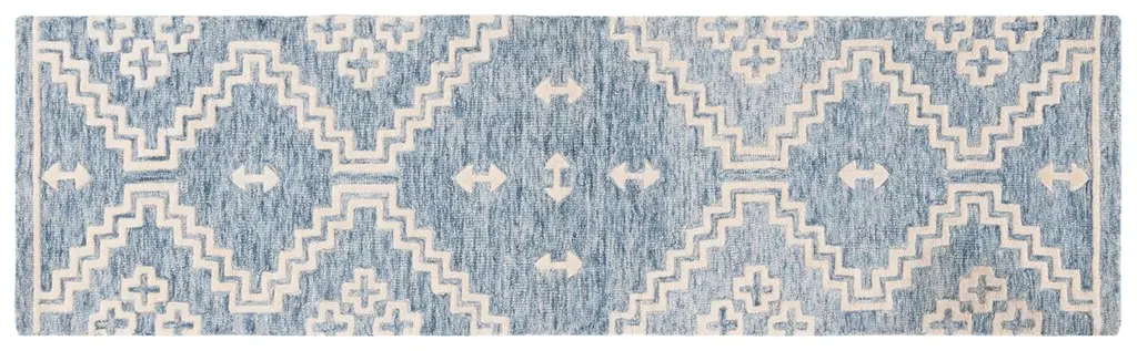 Elevate your living space with our exquisite hand-tufted area rug, sized conveniently at 4' X 6'. Crafted from the finest wool in India, this rug exudes a contemporary style that is timeless. The small rectangle shape offers a perfect accent for any room within your stylish abode. Adorned in a harmonious blend of blue and ivory, the rug features a captivating geometric pattern that draws the eye and adds a touch of elegance to your decor. The soft pile height ensures a plush feel underfoot, making every step a luxurious experience. Whether it's the living room or the bedroom, this piece promises to blend seamlessly with your modern home aesthetics.