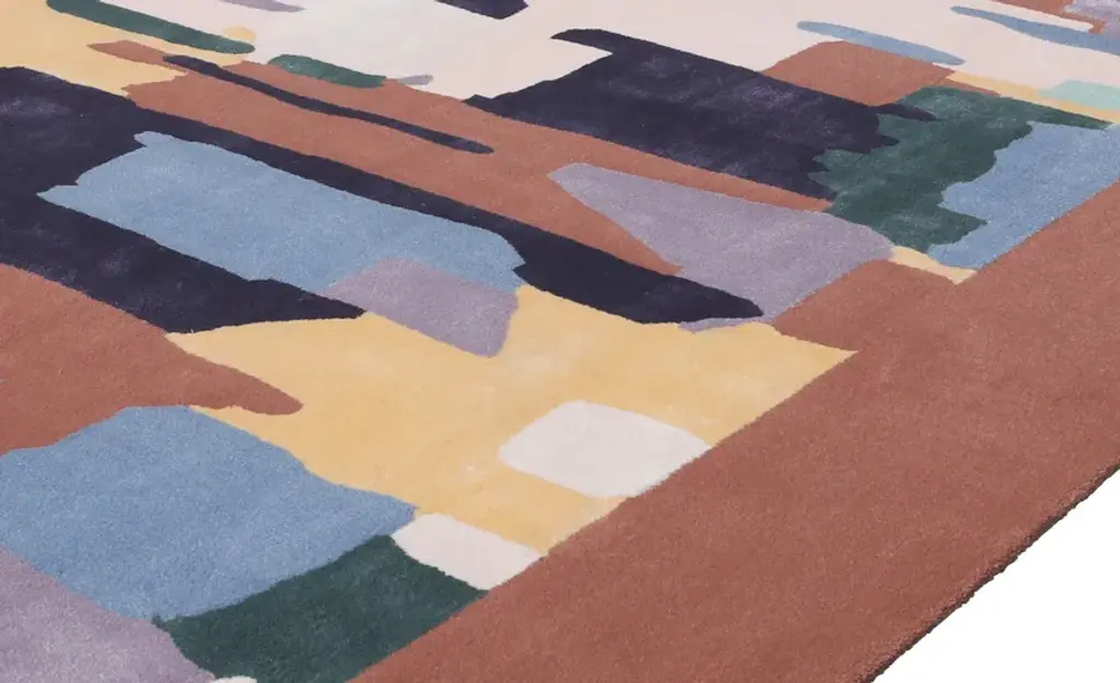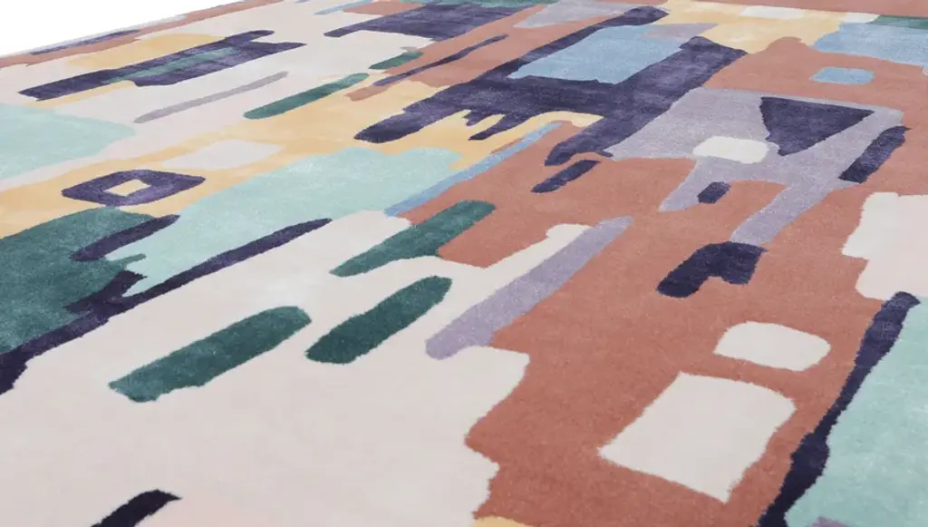 Manhattan NYC is a hand-tufted geometric rug in New Zealand wool and Tencel.A collection between fashion and design, made up of hand-tufted flowers, carpets and wall-hangings based on Ken Scott’s archive designs. A tribute to the famous painter and eclectic designer who marked fashion and design trends in the 60s and 70s. The carpets show the world of Ken Scott, made of colour, irony, spectacular flowers, animals and childish abstract shapes.