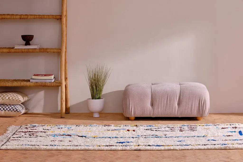 Our Moroccan pieces are each one-of-a-kind. Much of our collection was woven between 30 and 100 years ago, and curated by us. Other rugs in our collection are fresh off the loom and made with traditional techniques. Moroccan rugs don’t come with a key. As with any painting or poem, their motifs have many subjective interpretations. Originally made for personal use, these rugs took months to weave, documenting a shifting tide of events and emotions in the weaver’s life.