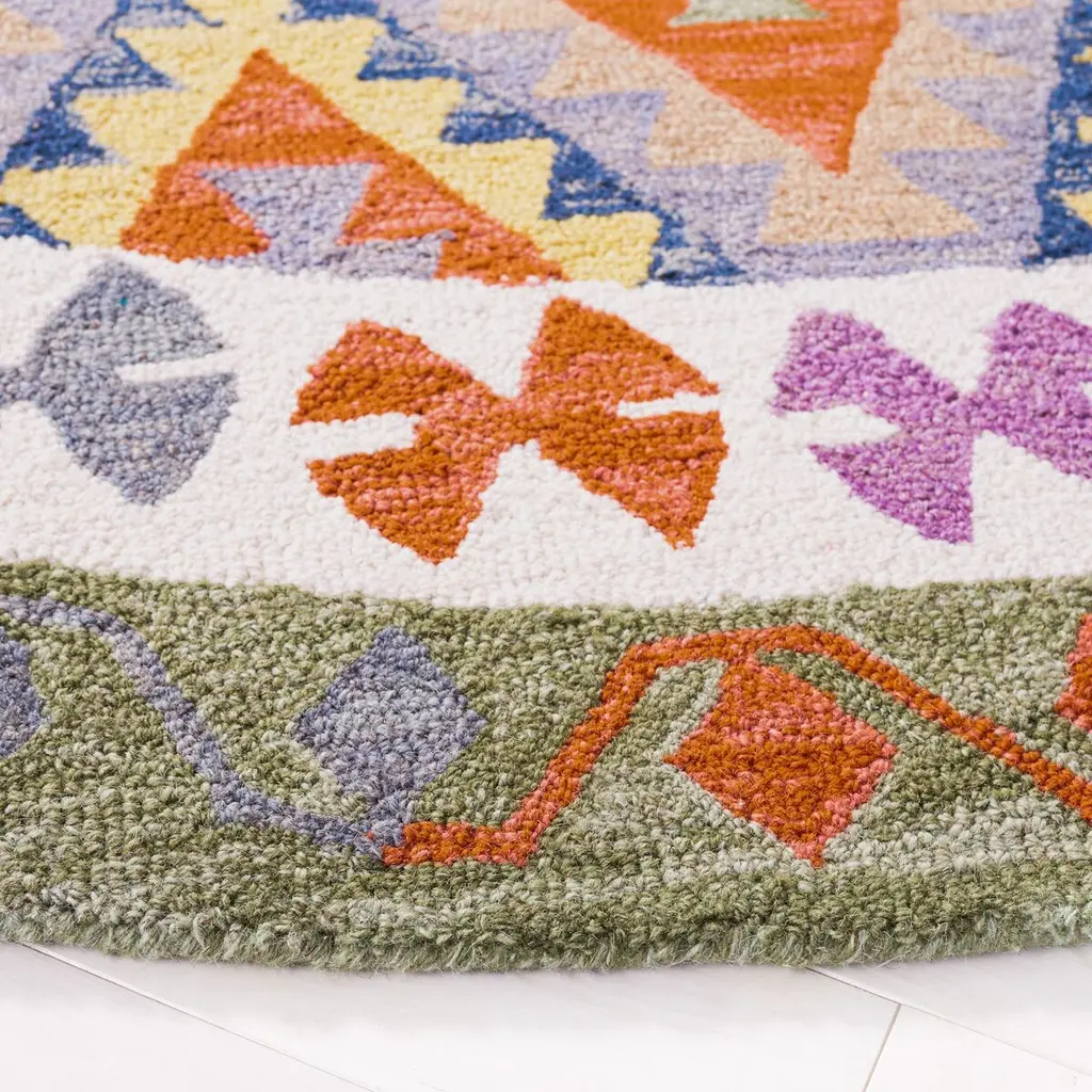 Elevate your living space with this exquisite 4' X 6' small rectangle area rug, hand-tufted with a blend of 80% wool, 10% cotton, and 10% latex for long-lasting comfort and durability. Adorning your floors from India, this rug features a plush 1/2" pile height, ideal for bringing a touch of warmth and luxury underfoot. Its harmonious ivory and grey color palette provides a neutral backdrop, allowing the intricate, geometric diamond pattern to take center stage, accentuated by splashes of vibrant hues in a traditional yet contemporary design. The rich texture and artistic arrangement offer an eclectic mix of style and sophistication, making this rug an elegant centerpiece in any room. Crafted with meticulous care, this gorgeous rug captures the essence of craftsmanship and design, ready to complement a variety of decors from modern to classic. Indulge in timeless beauty and cultural flair with this compelling decorative statement piece.