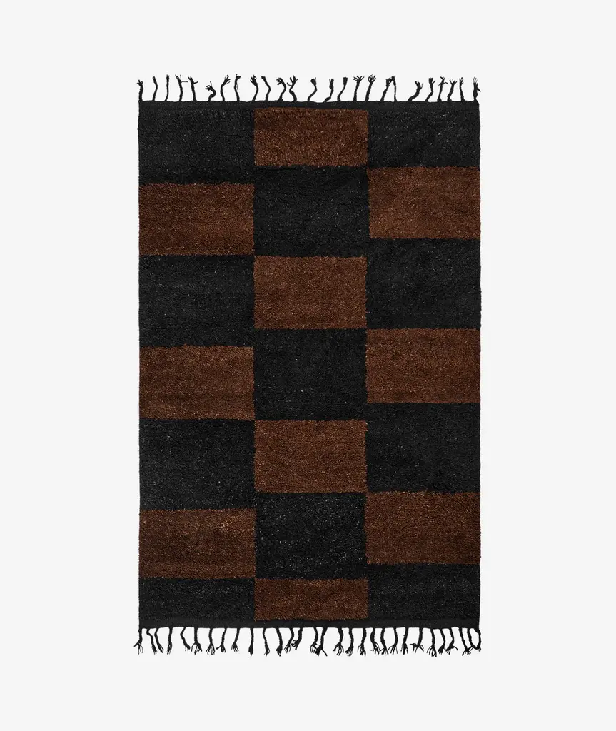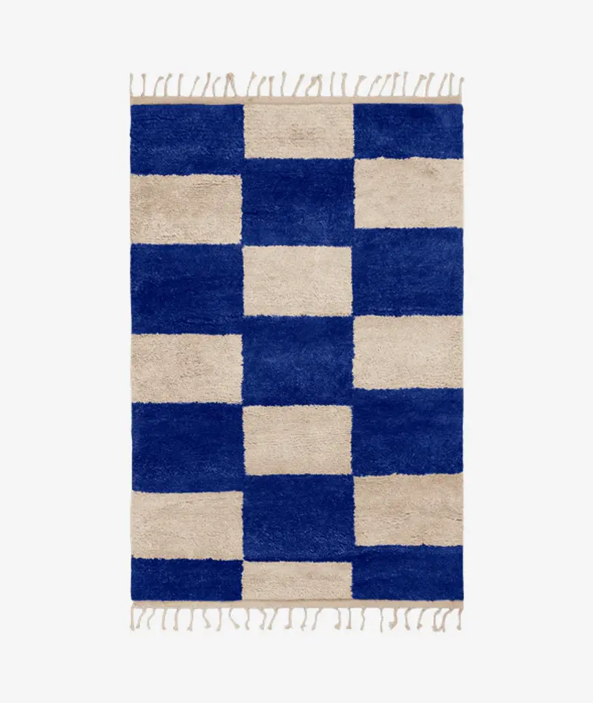 The Mara Knotted Rug is a contemporary take on a classic woollen rug with a bold checked pattern and decorative fringes. Being hand-knotted in New Zealand wool, the rug has a soft, tactile expression with a graphic artwork. The result is a daring yet balanced design that will give any room a soft element of contrast.