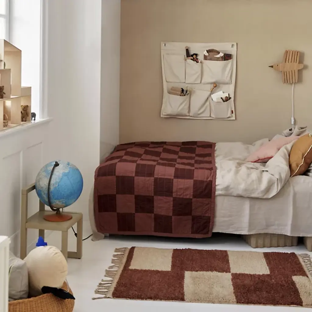The Mara Rug from Ferm Living bridges past and present in wool and cotton. Its bold, checked pattern nods to traditional textiles while its execution feels thoroughly modern. The rug's hand-knotted construction speaks to its quality, promising durability and a unique character that machine-made pieces can't match. The decorative fringe adds movement and texture, softening the geometric design. The Mara Rug adapts to different spaces throughout the day, appearing bold in morning light and subtly textured in evening shadows.