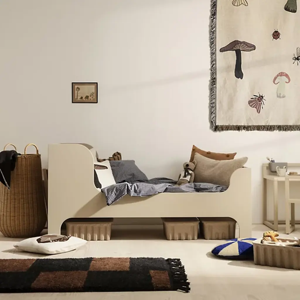 The Mara Rug from Ferm Living bridges past and present in wool and cotton. Its bold, checked pattern nods to traditional textiles while its execution feels thoroughly modern. The rug's hand-knotted construction speaks to its quality, promising durability and a unique character that machine-made pieces can't match. The decorative fringe adds movement and texture, softening the geometric design. The Mara Rug adapts to different spaces throughout the day, appearing bold in morning light and subtly textured in evening shadows.