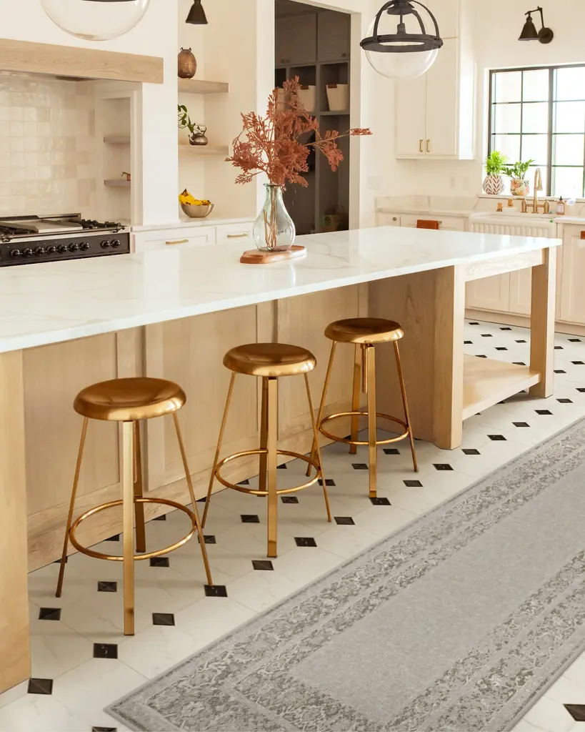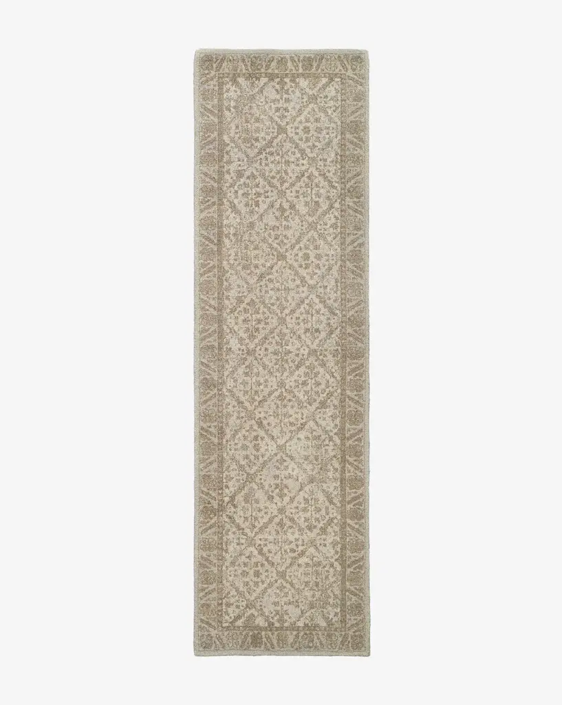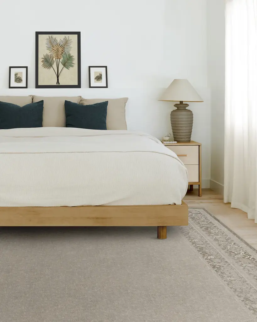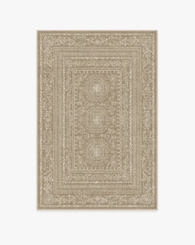 Style your space with our gorgeous Maral Border Hazel Rug. This elegant rug, which features a traditional Persian rug-inspired motif, is beautifully rendered in soft hues of silver taupe and natural linen.