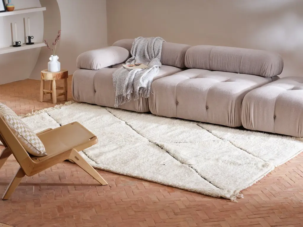 Our Moroccan pieces are each one-of-a-kind. Much of our collection was woven between 30 and 100 years ago, and curated by us. Other rugs in our collection are fresh off the loom and made with traditional techniques. Moroccan rugs don’t come with a key. As with any painting or poem, their motifs have many subjective interpretations. Originally made for personal use, these rugs took months to weave, documenting a shifting tide of events and emotions in the weaver’s life.