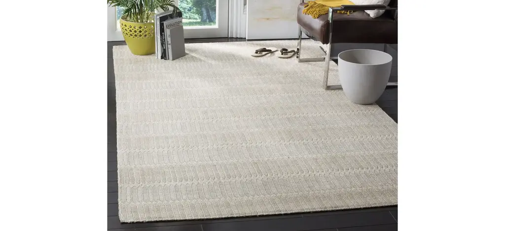 The Marbella I Area Rug displays the simple elegance of hand woven flat weave rugs in marvelous color and style. This classy-casual floor covering is made using durable synthetic yarn and finished with a soft cotton backing for a cushioned feel underfoot and long lasting, Contemporary & Modern style in room decor.