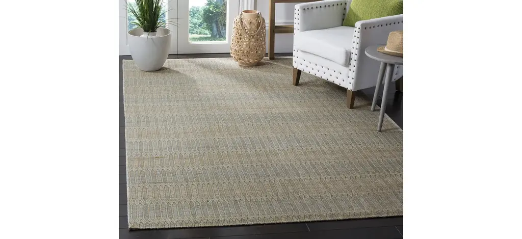 The Marbella I Area Rug displays the simple elegance of hand woven flat weave rugs in marvelous color and style. This classy-casual floor covering is made using durable synthetic yarn and finished with a soft cotton backing for a cushioned feel underfoot and long lasting, Contemporary & Modern style in room decor.