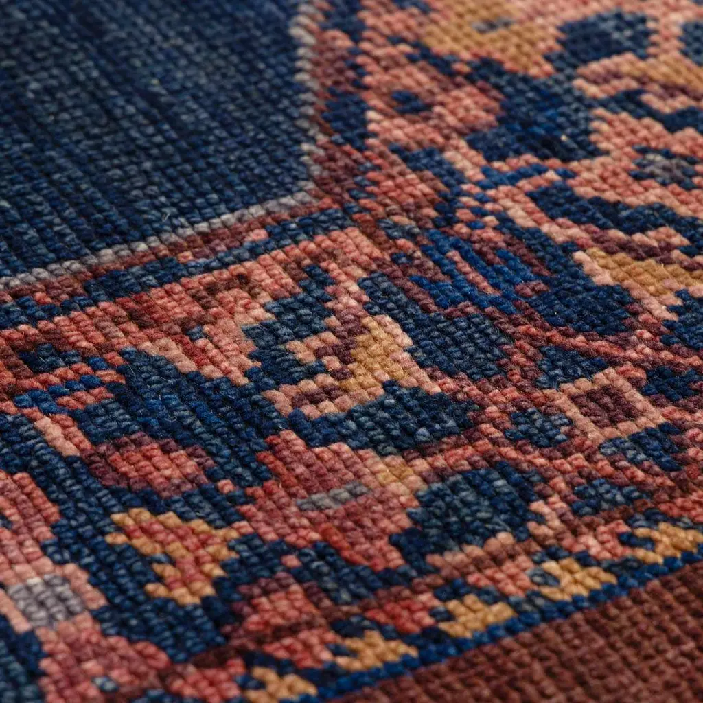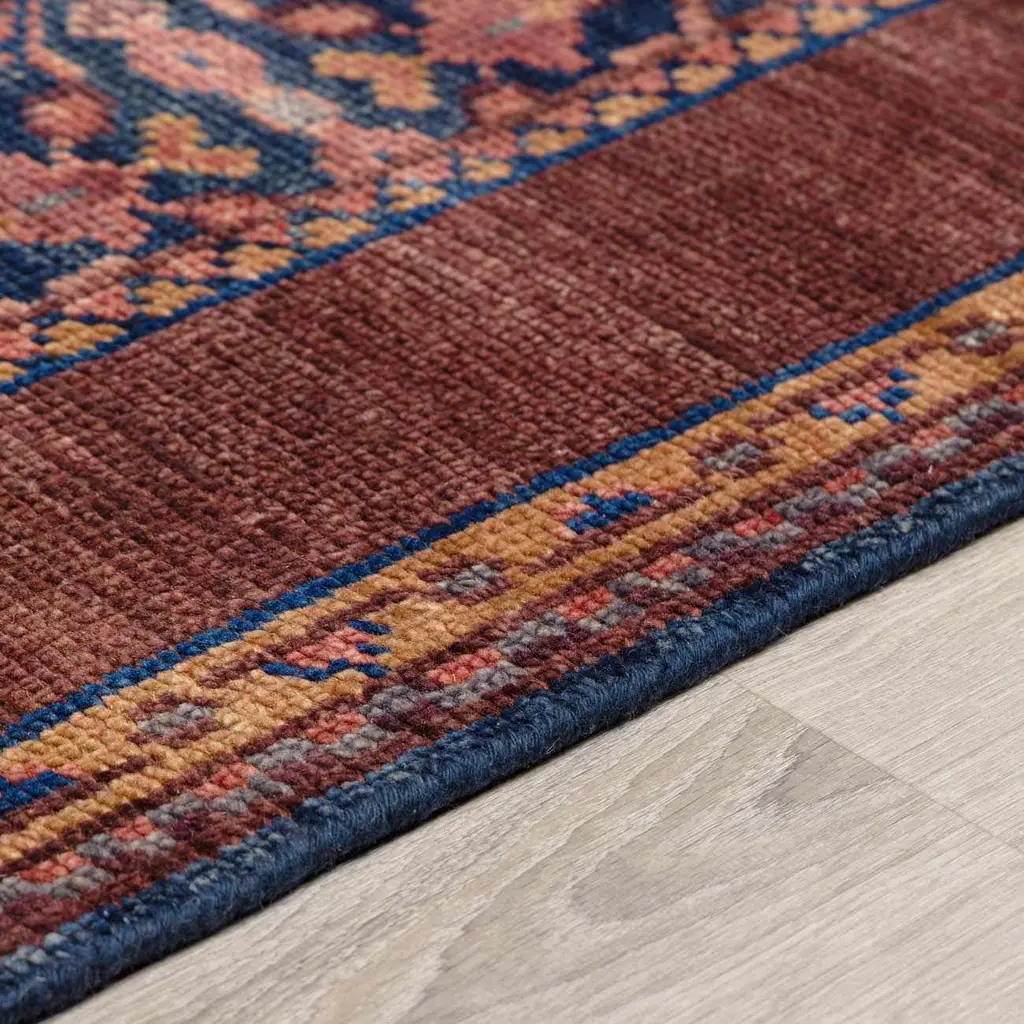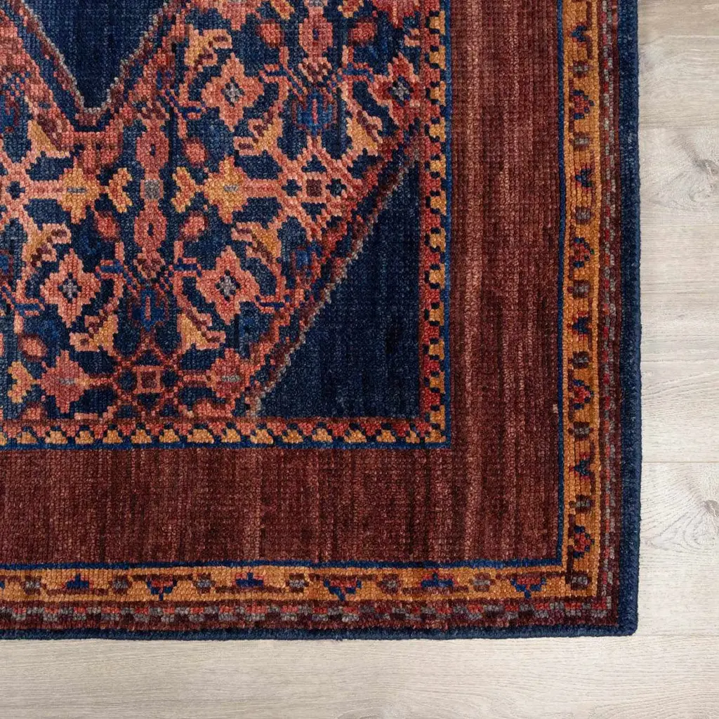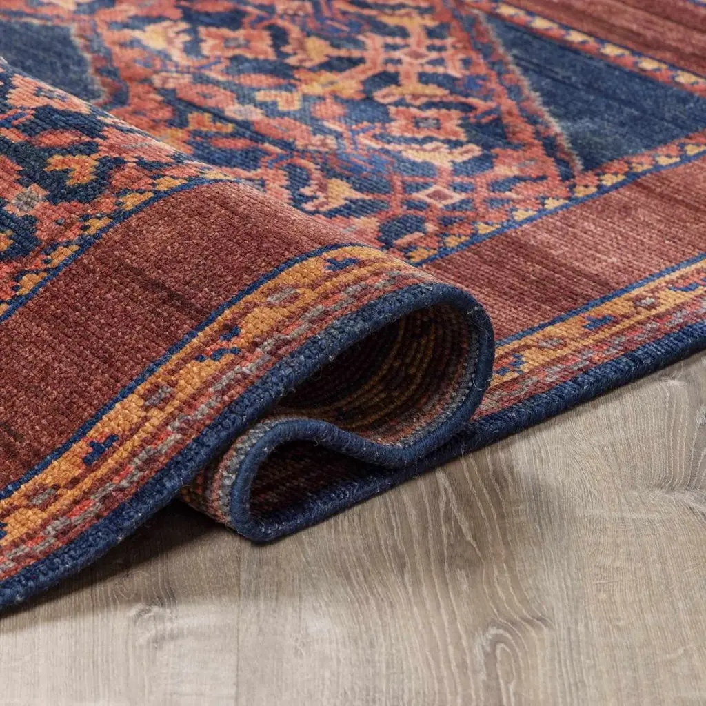 Collection: March Colors: Burgundy, Magenta, Navy, Red, Rust Construction: Hand Knotted Material: Face: 100% Wool Pile: Low Pile Pile Height: 0.15" Styles: Traditional Made In: India Thickness: 0.4" Price Range: $$$$$ (Premium)