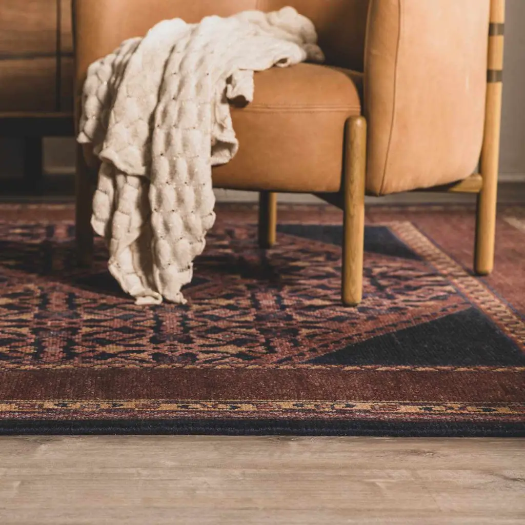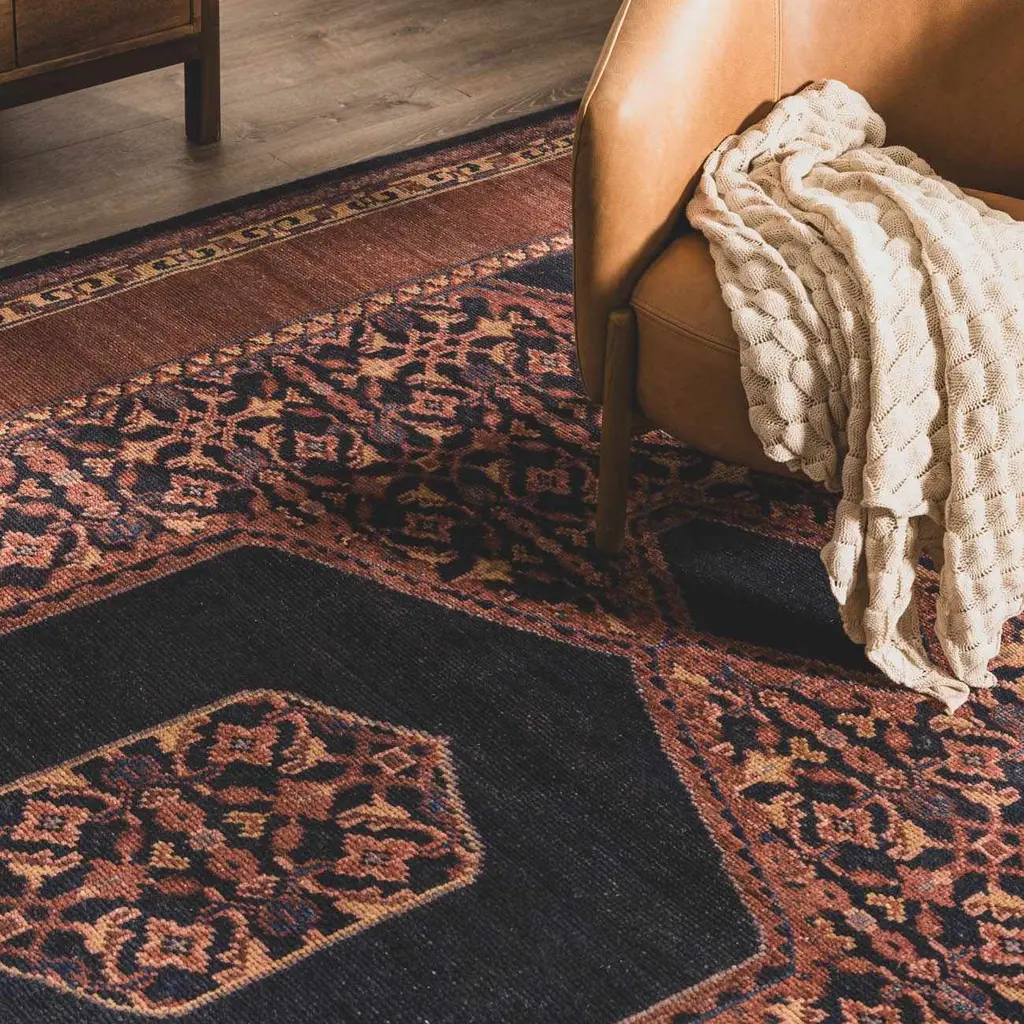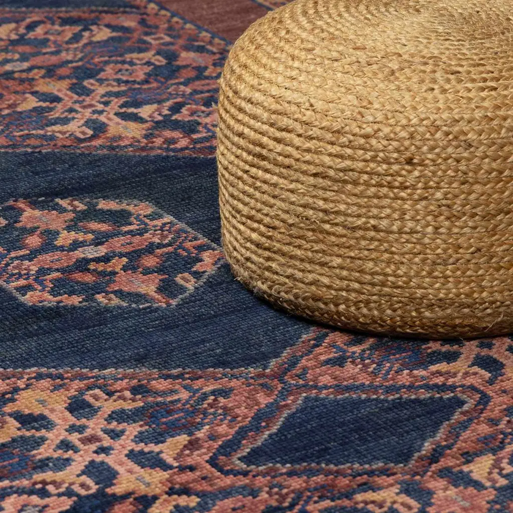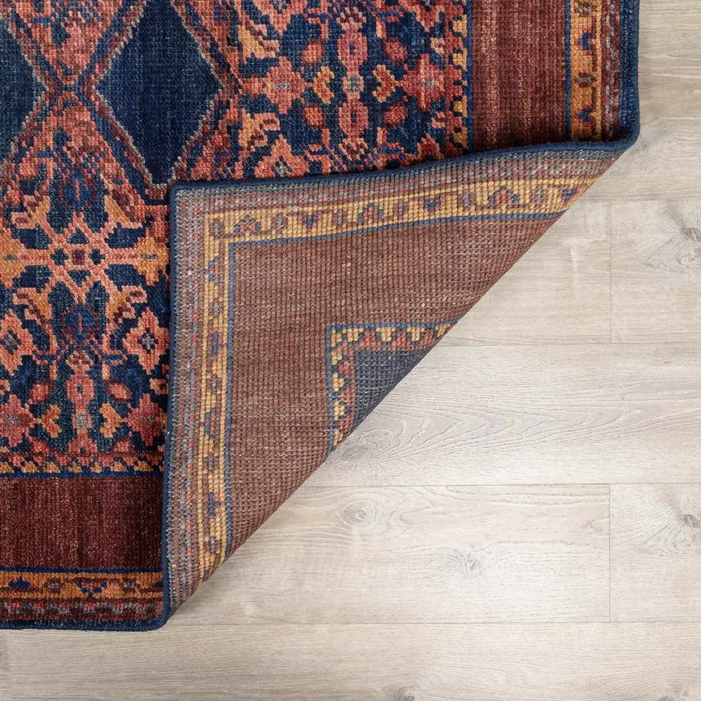 Collection: March Colors: Burgundy, Magenta, Navy, Red, Rust Construction: Hand Knotted Material: Face: 100% Wool Pile: Low Pile Pile Height: 0.15" Styles: Traditional Made In: India Thickness: 0.4" Price Range: $$$$$ (Premium)