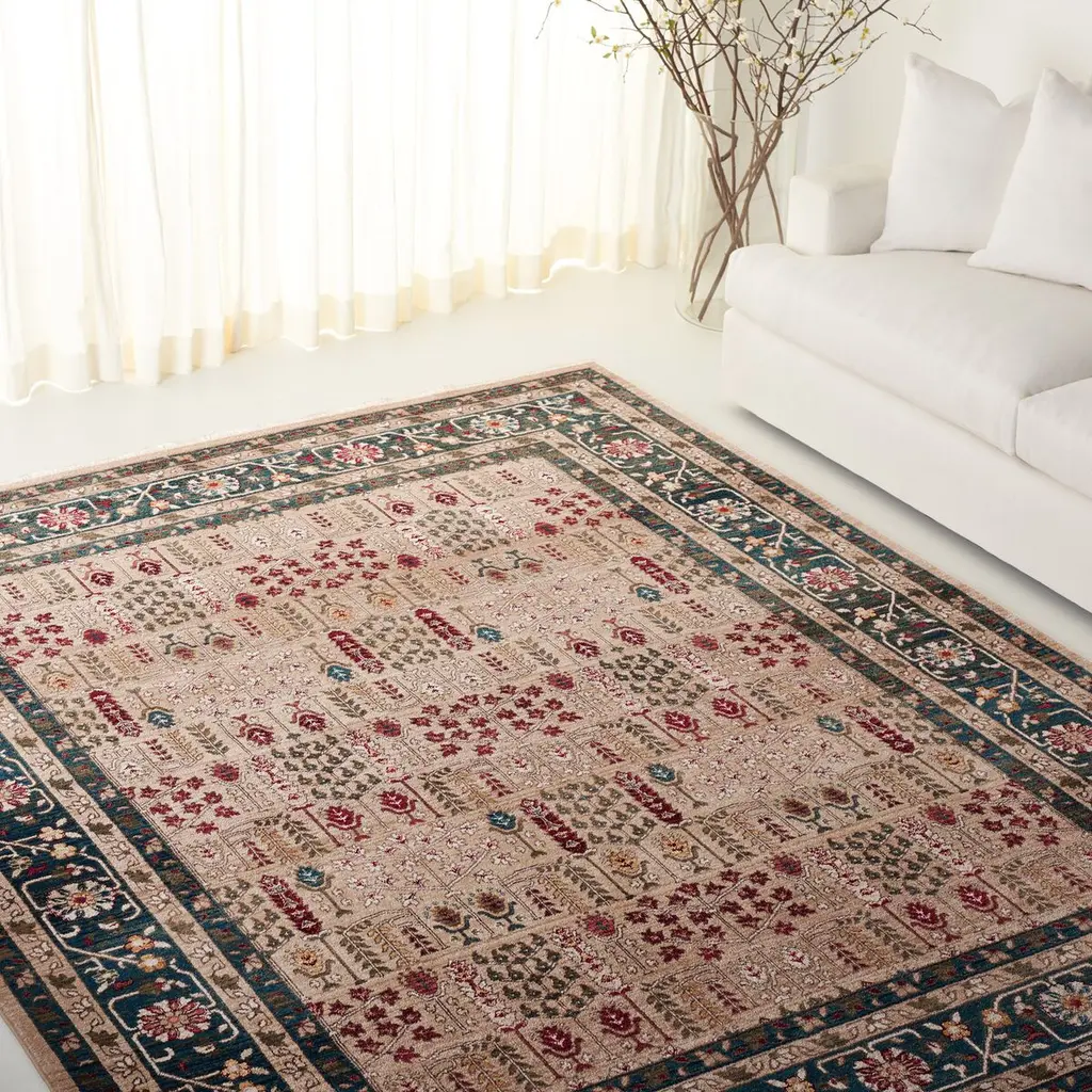 Elevate your home with the timeless elegance of our Traditional Beige/Navy Area Rug. Crafted with care in Turkey, this medium rectangle rug, sized 5'-1" x 7'-6", boasts a harmonious blend of beige and deep navy tones, creating an inviting and sophisticated atmosphere in any room. The rug's pattern features an intricate display of traditional motifs, including floral accents and decorative borders, that speak volumes of its craftsmanship and attention to detail. Its flat weave construction made from high-quality polypropylene ensures a durable and low-maintenance surface that stands up to daily wear. With a comfortable 3/8" pile height, this area rug provides a soft underfoot without compromising on the ease of cleaning and flatness of the weave. The OEKO-TEX certification promises that your new rug is free from harmful substances, making it a safe and eco-friendly choice for your family and pets. The charm of this rug's style lies in its ability to complement both classic and contemporary decors, allowing for seamless integration into your living space. Whether placed in your living room, dining area, or bedroom, this rug's handsome design and luxurious feel will transform your home into a haven of comfort and style. Indulge in the richness of Turkish artisanship with this beautiful area rug, designed to endure and inspire for years to come.