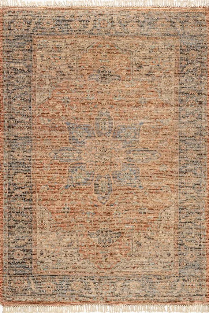 The Marigold Tasseled Rug is one of those pieces you notice the moment you step into a room. Its rich amber hue, its bold black border, its unique motifevery element of this design works together to deliver stunning, vintage-inspired elegance. Whether you style this one on its own or atop your favorite natural fiber rug for that layered look, it's bound to be a sight to behold.