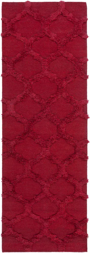Collection: Marilla Colors: Red Construction: Hand Woven Material: 100% Wool Pile: Plush Pile Pile Height: 1.3" Styles: Natural Fibers Made In: India Thickness: 1.3" Price Range: $$$$$ (Affordable)