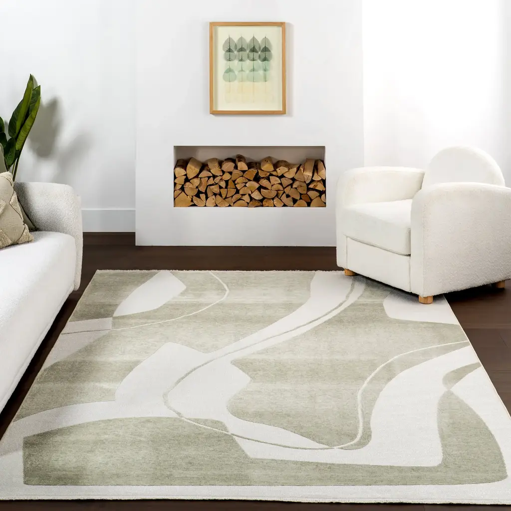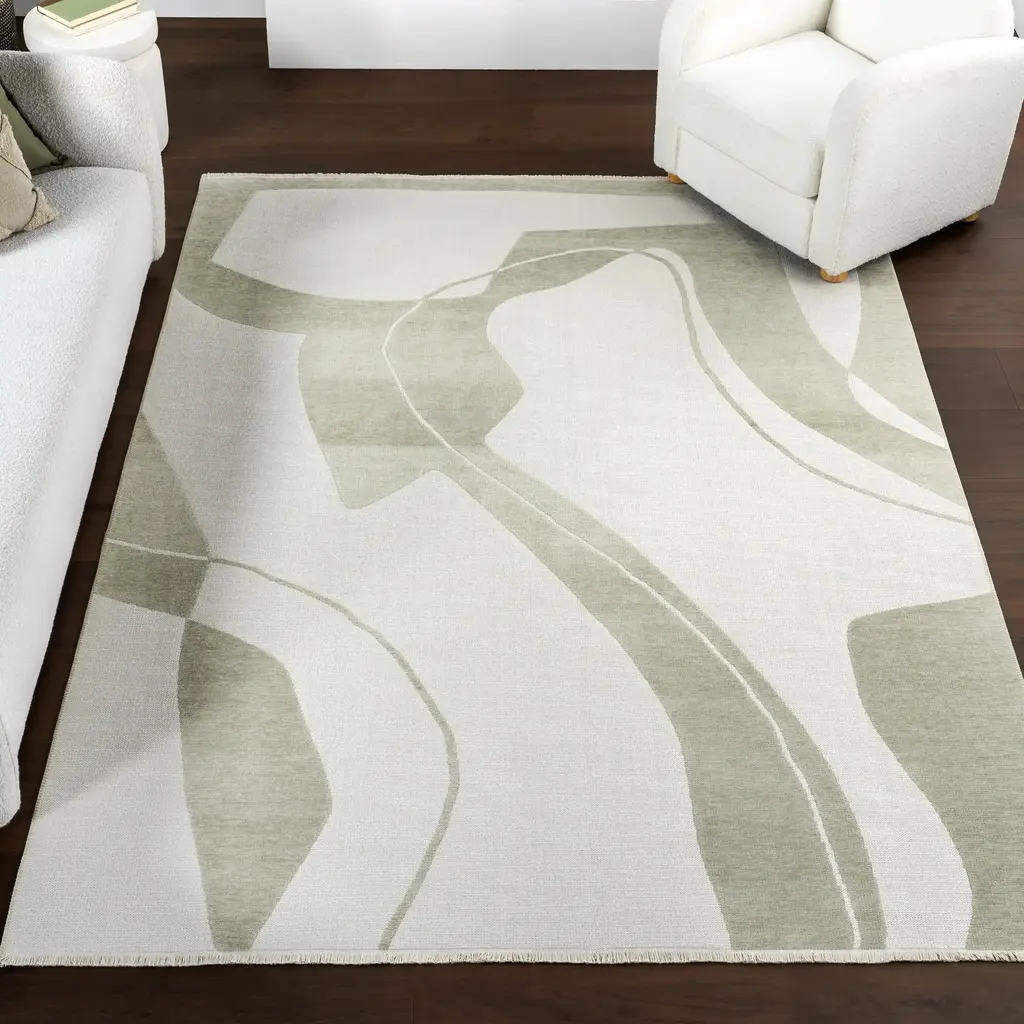 Marion Abstract Fringed Reversible Washable Rug | Green - 4' X 6'