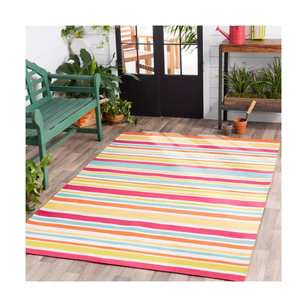 Maritime 36 X 24 Inch Bright Pink/white/lime/burnt Orange/teal/saffron Outdoor Rug, Rectangle