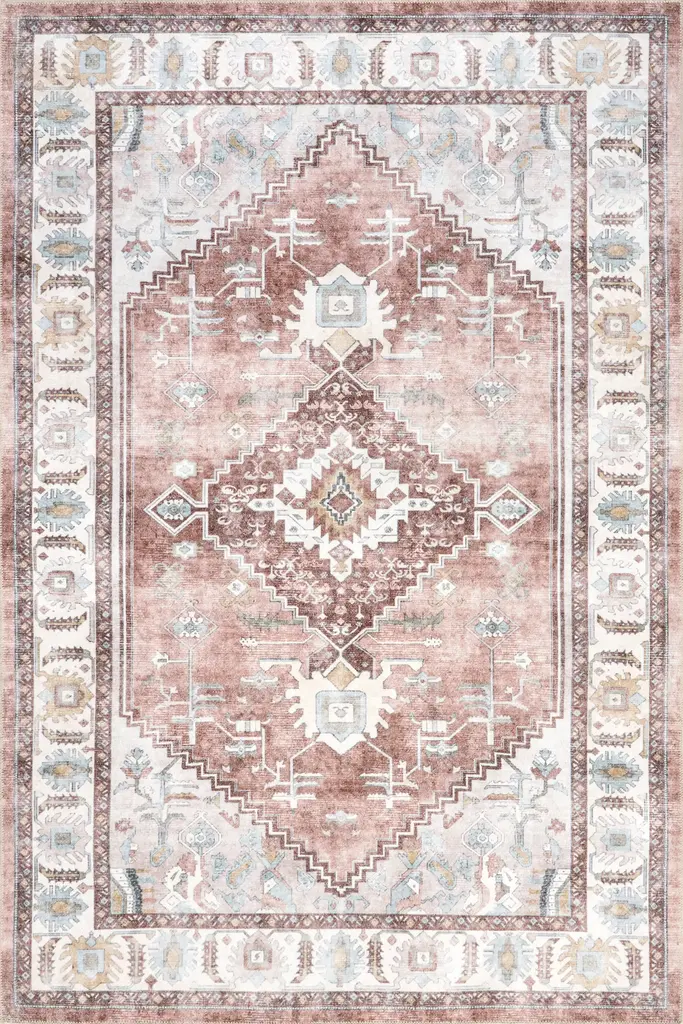 Hollebalg Traditional Brick Area Rug is a rug that gathers your gaze on it. It contains quite a lot of patterns. Although the ethnic motifs contained in these patterns push it to traditionalism, the colors it contains also add modernity and trendiness to it. it is 100% polypropylene and stain resistant.