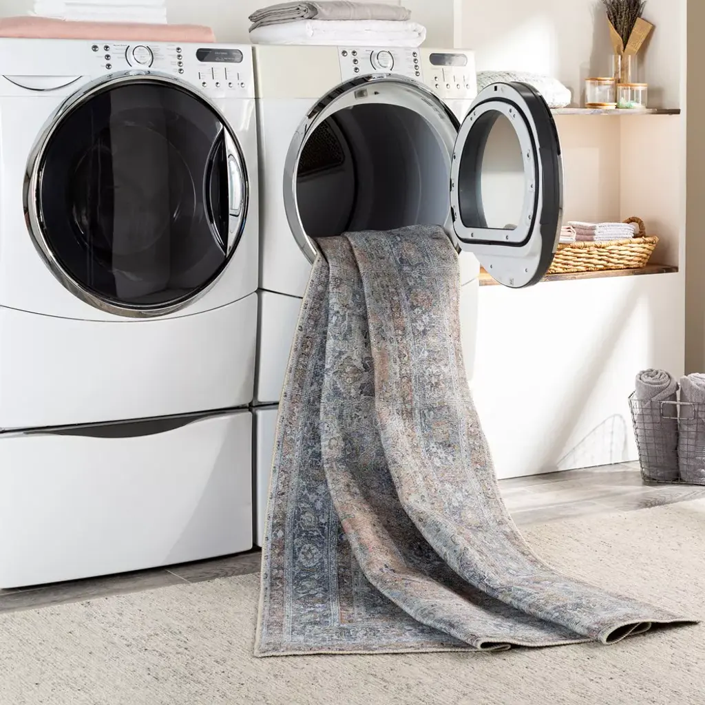 The Westphalia Traditional Slate Washable Area Rug showcases traditional inspired designs that exemplify timeless styles of elegance, comfort, and sophistication. The meticulously woven construction of these pieces boasts durability and will provide natural charm into your decor space. Made with Chenille-Polyester in Turkey, and has Low Pile. Spot Clean Only.