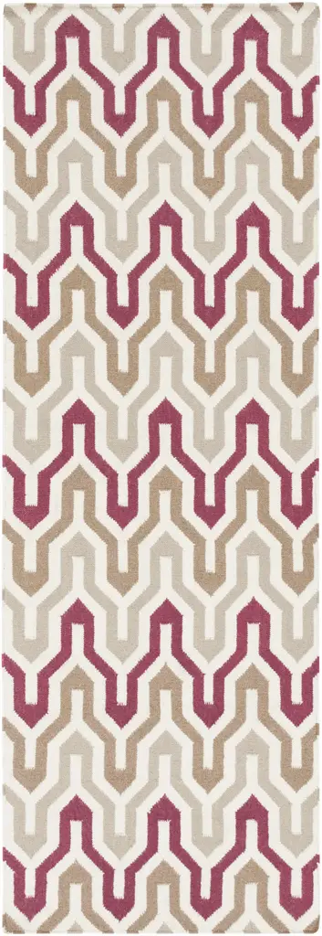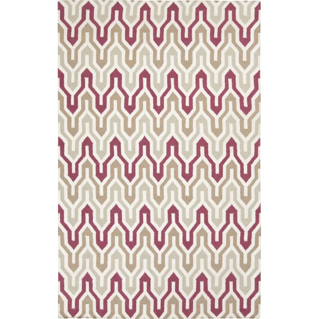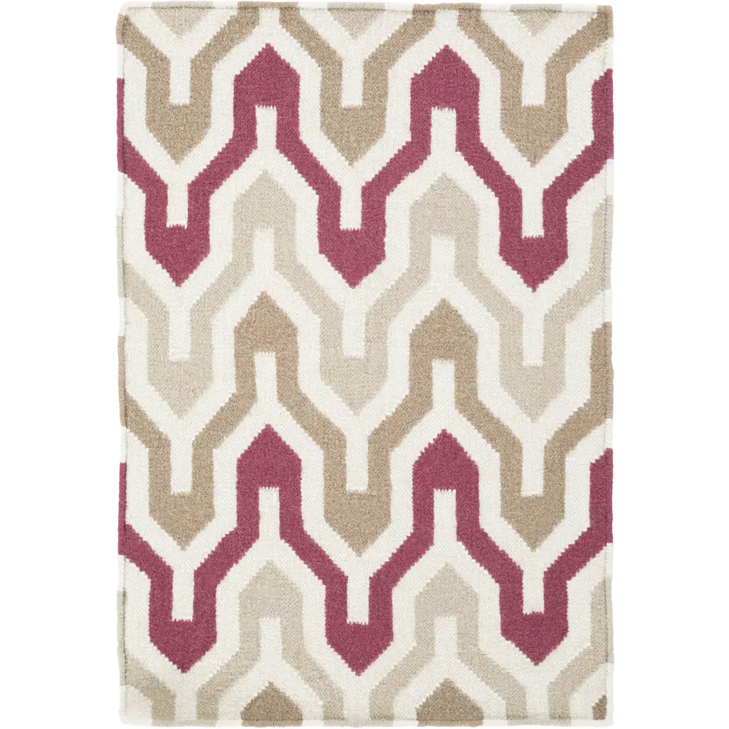 Collection: Markesan Colors: Ivory, Dark Red, Medium Brown, Medium Gray Construction: Hand Woven Material: 100% Wool Pile: No Pile Styles: Transitional Made In: India Thickness: 0.16" Price Range: $$$$$ (Most Affordable)