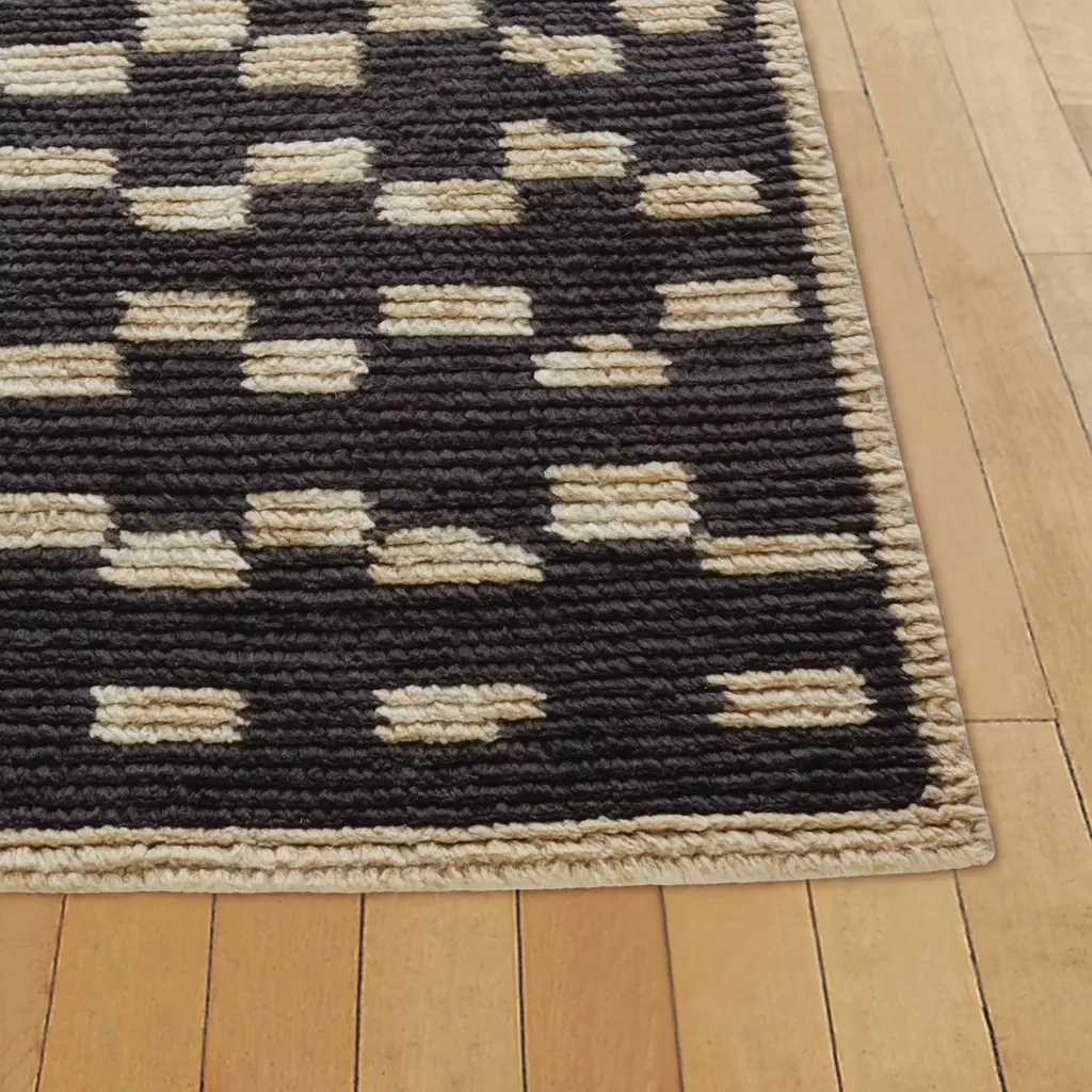 The luxuriously soft Marl Moroccan Wool Rug, part of the DWR Rug Collection, features a geometric motif inspired by classic tribal rugs from the Atlas Mountains. Woven by hand in India on a horizontal manual loom, Marl offers a fresh take with its durable, flat weave combined with tufts of low pile. Its warm, neutral color palette and pure wool construction make it an enduring choice for any room. Vacuum Marl periodically without a rotating brush. Shedding is a natural, common occurrence and will decrease over time. Rug pad recommended.