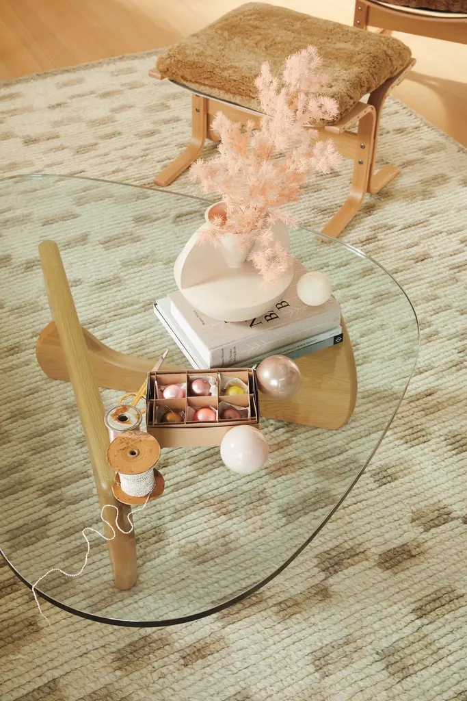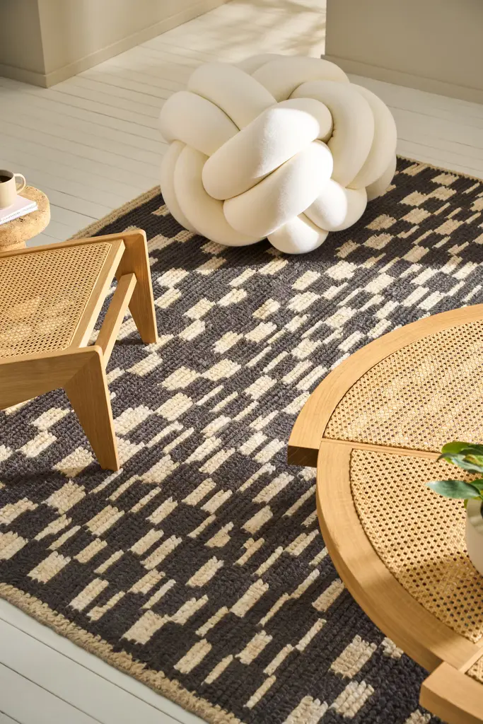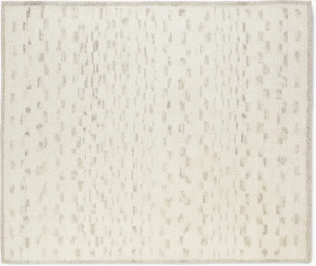The luxuriously soft Marl Moroccan Wool Rug, part of the DWR Rug Collection, features a geometric motif inspired by classic tribal rugs from the Atlas Mountains. Woven by hand in India on a horizontal manual loom, Marl offers a fresh take with its durable, flat weave combined with tufts of low pile. Its warm, neutral color palette and pure wool construction make it an enduring choice for any room. Vacuum Marl periodically without a rotating brush. Shedding is a natural, common occurrence and will decrease over time. Do not vacuum with a brush roller. Rug pad recommended.