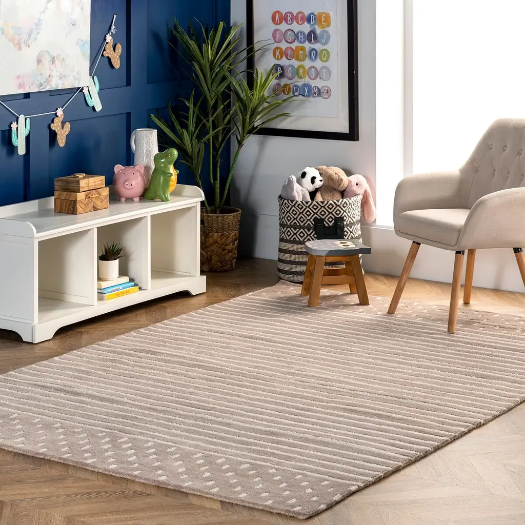 A striped moment. A dotted moment. A modern moment. Hand-tufted and made of 100% wool, it’s super soft and a dream to walk (or dance) on.