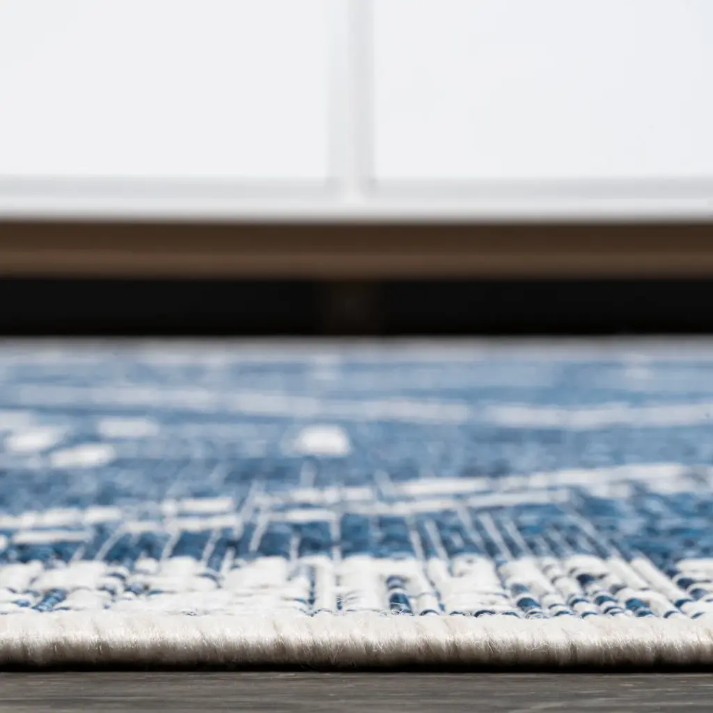 Marokko Diamond Tribal Indoor/outdoor Rug, Blue And Ivory, 2X8