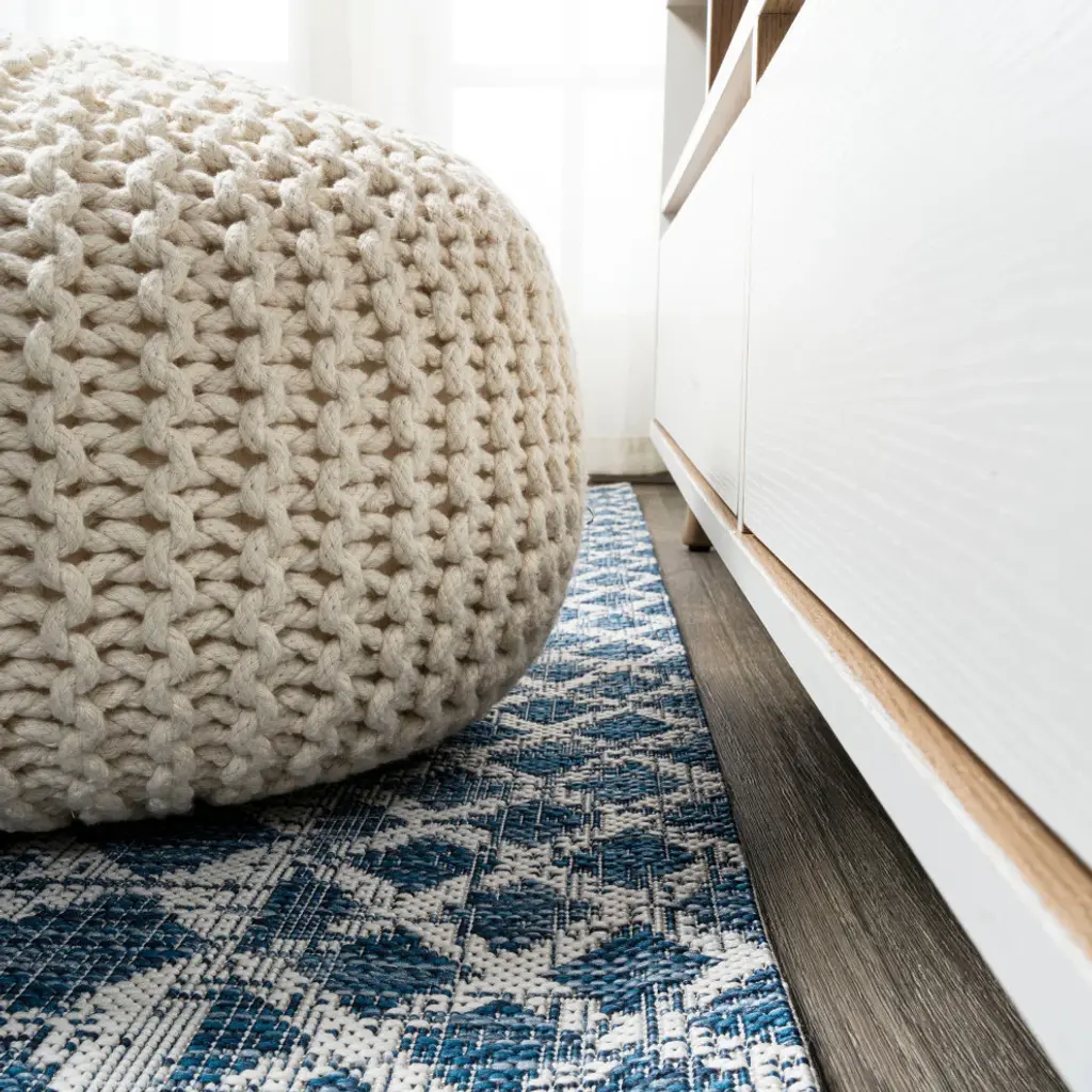 Moroccan influences abound in the geometric design of our tribal-inspired rug. Large diamond medallions bordered by trellis details create a bold pattern. Add graphic impact to a modern living room, dining room, bedroom, kitchen or entry and create your Boho-chic story.Features:• Power loomed with a 0.19" pile that''s soft and durable• The crisp blue and ivory color scheme adds coastal cottage flair to a modern tribal design• Made from easy-care polypropylene - just sweep, vacuum or hose down with mild soap and water• 100% Polypropylene• No backing, use of rug pad is recommended (sold separately)• Power Loomed in Turkey• Actual Dimension: 2 ft. 2 in. x 8 ft.• Color: Blue/Ivory• Thickness measures: 0.19 in.• Available in multiple sizes and/or colorsRug Care:• Vacuum regularly and spot clean as needed; avoid direct and continuous exposure to sunlight; use brushless vacuum; remove spills immediately; if liquid, blot with clean, undyed cloth by pressing firmly around the spill to absorb as much as possible; for hard to remove stains, professional rug cleaning is recommended; store in a dry, well ventilated area and rotate for consistent wear• Packing and shipping may cause temporary creases in rugs, which will flatten out after a week on the floor; to expedite the process, try back-rolling your rug before laying it down, and then allow ample time for the remaining creases to relax• Please Note: Due to differences in monitors, some rug colors may vary slightly. Lengths and widths may vary from the published dimensions. Patterns may vary slightly according to shape and size selected.About us:Style your floors with JONATHAN Y. By combining fine craftsmanship and design, this New York creative studio is bringing fashion to your floors. The collection mixes sustainable organic materials, vibrant colors and trend worthy styles to create JONATHAN Y''s distinctive catalog of rugs.