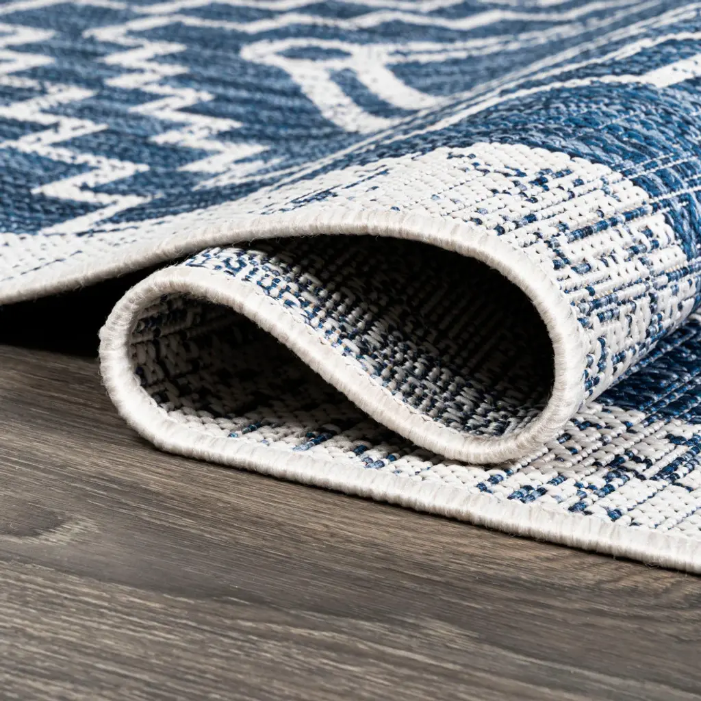 Marokko Diamond Tribal Indoor/outdoor Rug, Blue/ivory, 8'x10'