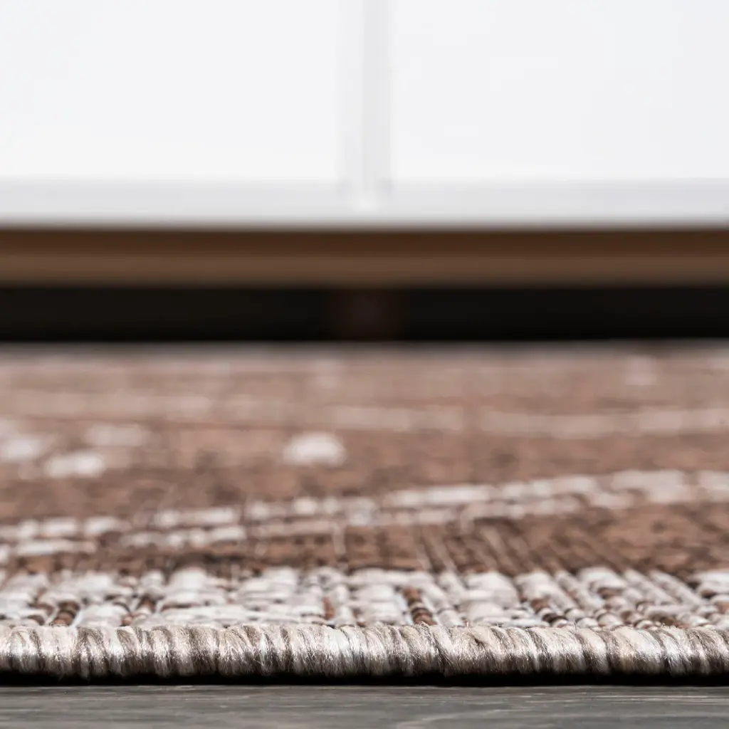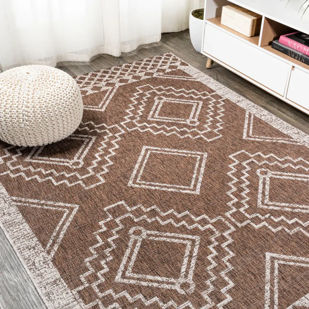 Moroccan influences abound in the geometric design of our tribal-inspired rug. Large diamond medallions bordered by trellis details create a bold pattern. Add graphic impact to a modern living room, dining room, bedroom, kitchen or entry and create your Boho-chic story. Features:• Power loomed with a 0. 19" pile that''s soft and durable• The rich brown and beige color scheme adds mid-century modern flair to this tribal design• Made from easy-care polypropylene - just sweep, vacuum or hose down with mild soap and water• 100% Polypropylene• No backing, use of rug pad is recommended (sold separately)• Power Loomed in Turkey• Actual Dimension: 4 ft. x 6 ft. • Color: Brown/Beige• Thickness measures: 0. 19 in. • Available in multiple sizes and/or colorsRug Care:• Vacuum regularly and spot clean as needed; avoid direct and continuous exposure to sunlight; use brushless vacuum; remove spills immediately; if liquid, blot with clean, undyed cloth by pressing firmly around the spill to absorb as much as possible; for hard to remove stains, professional rug cleaning is recommended; store in a dry, well ventilated area and rotate for consistent wear• Packing and shipping may cause temporary creases in rugs, which will flatten out after a week on the floor; to expedite the process, try back-rolling your rug before laying it down, and then allow ample time for the remaining creases to relax• Please Note: Due to differences in monitors, some rug colors may vary slightly. Lengths and widths may vary from the published dimensions. Patterns may vary slightly according to shape and size selected. About us:Style your floors with JONATHAN Y. By combining fine craftsmanship and design, this New York creative studio is bringing fashion to your floors. The collection mixes sustainable organic materials, vibrant colors and trend worthy styles to create JONATHAN Y''s distinctive catalog of rugs.