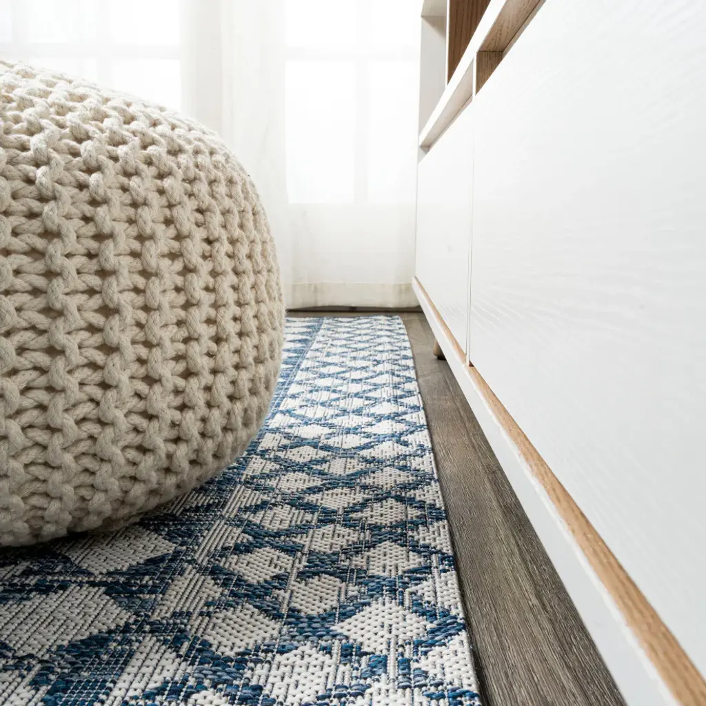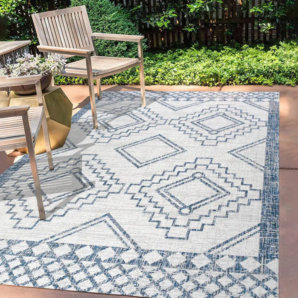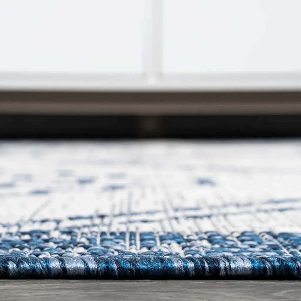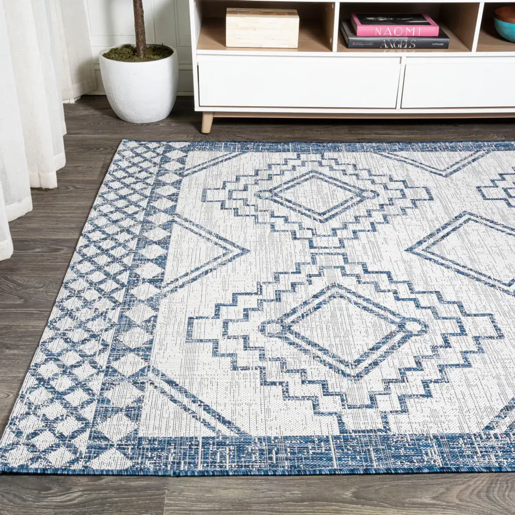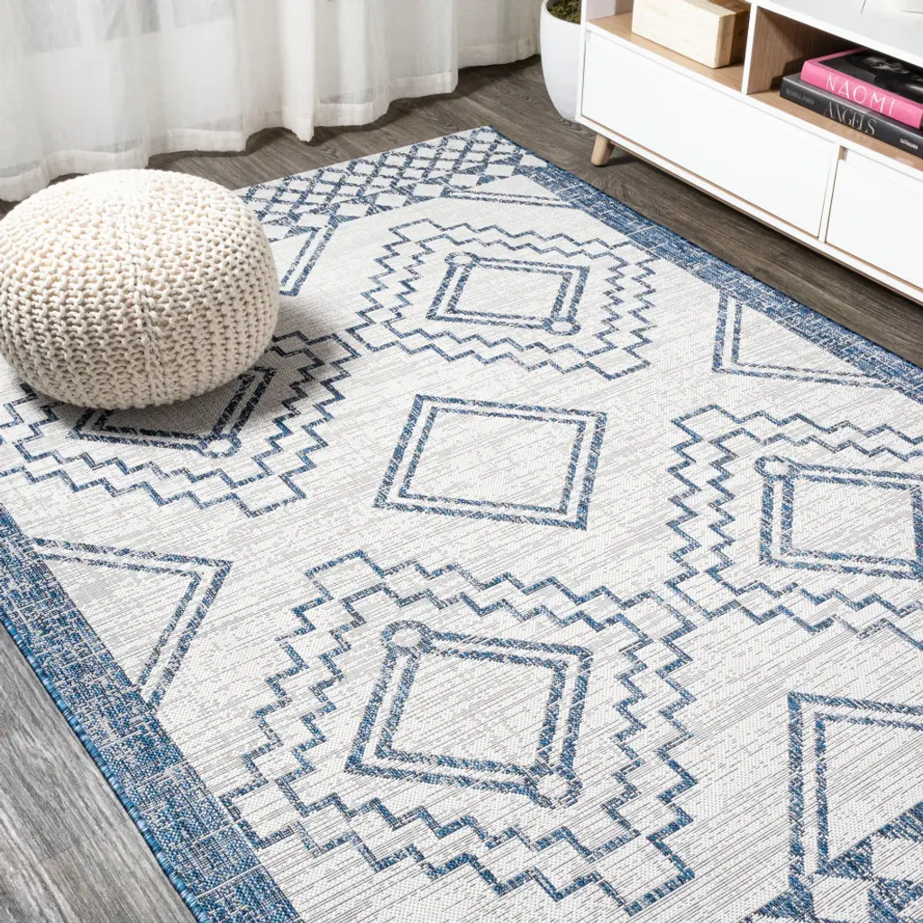 Moroccan influences abound in the geometric design of our tribal-inspired rug. Large diamond medallions bordered by trellis details create a bold pattern. Add graphic impact to a modern living room, dining room, bedroom, kitchen or entry and create your Boho-chic story. Features:• Power loomed with a 0. 19" pile that''s soft and durable• The crisp blue and ivory color scheme adds coastal cottage flair to a modern tribal design• Made from easy-care polypropylene - just sweep, vacuum or hose down with mild soap and water• 100% Polypropylene• No backing, use of rug pad is recommended (sold separately)• Power Loomed in Turkey• Actual Dimension: 3 ft. x 5 ft. • Color: Ivory/Blue• Thickness measures: 0. 19 in. • Available in multiple sizes and/or colorsRug Care:• Vacuum regularly and spot clean as needed; avoid direct and continuous exposure to sunlight; use brushless vacuum; remove spills immediately; if liquid, blot with clean, undyed cloth by pressing firmly around the spill to absorb as much as possible; for hard to remove stains, professional rug cleaning is recommended; store in a dry, well ventilated area and rotate for consistent wear• Packing and shipping may cause temporary creases in rugs, which will flatten out after a week on the floor; to expedite the process, try back-rolling your rug before laying it down, and then allow ample time for the remaining creases to relax• Please Note: Due to differences in monitors, some rug colors may vary slightly. Lengths and widths may vary from the published dimensions. Patterns may vary slightly according to shape and size selected. About us:Style your floors with JONATHAN Y. By combining fine craftsmanship and design, this New York creative studio is bringing fashion to your floors. The collection mixes sustainable organic materials, vibrant colors and trend worthy styles to create JONATHAN Y''s distinctive catalog of rugs.