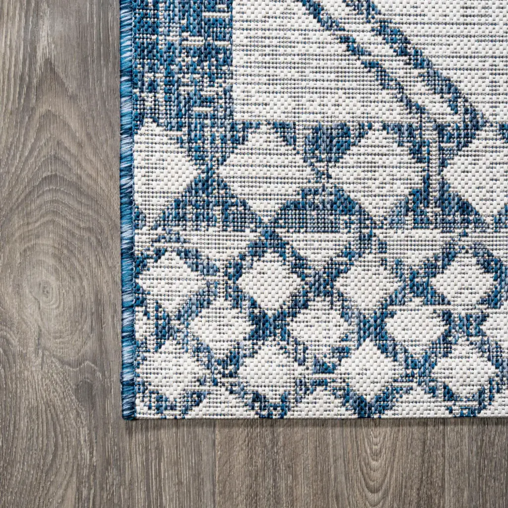 Marokko Diamond Tribal Indoor/outdoor Rug, Ivory/blue, 5'x8'