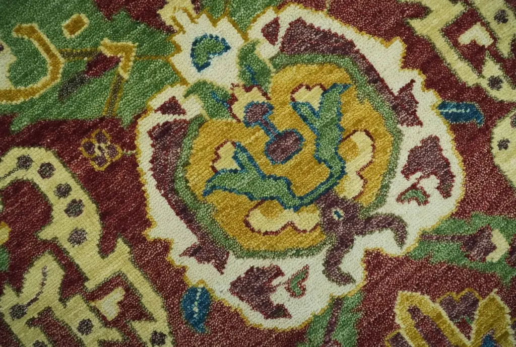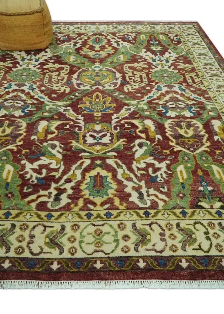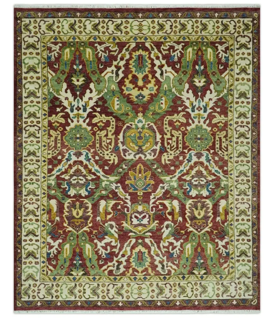 Expertly handcrafted with precision and care, this traditional large-design wool area rug boasts a stunning combination of maroon and green hues. Each hand-knotted detail showcases the expert craftsmanship put into creating this one-of-a-kind custom rug, elevating any space with its timeless charm. Hand-Knotted Made with Wool Made to Order in 30-45 Days Color: Maroon and Green Made with 28 knots per square inch. USERS GUIDE Avoid prolonged moisture Vacuum regularly and/or shake to remove dust Do not pull any loose threads. Use scissors to simply cut the ends The blot spills immediately with a white cloth. Harsh chemicals may damage or fade the rug Use rug protectors under heavy furniture