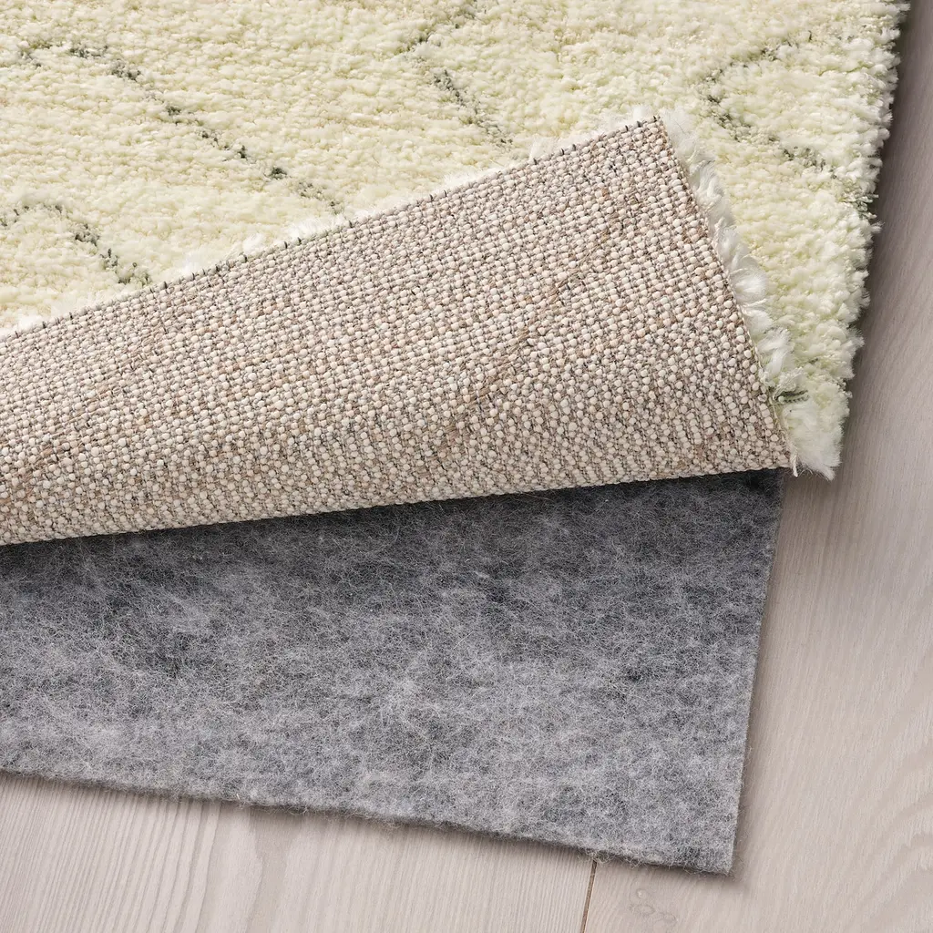 MARSTRUP Rug, low pile - beige 5 ' 3 "x7 ' 7 ". The pattern and colors are easy to coordinate with many different styles. Durable and stain resistant since the rug is made of synthetic fibers. The material does not shed and is very easy to care for. Nice and soft for your feet and comfy to sit on.