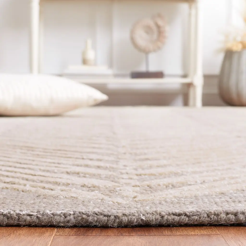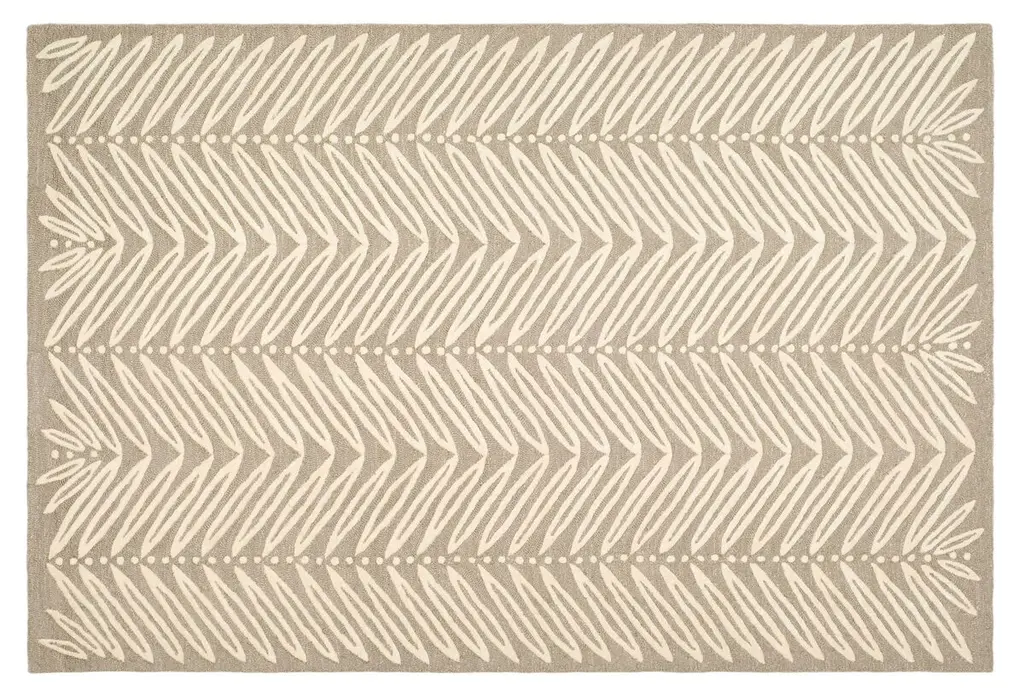 Taking its inspiration from a vintage wallpaper print, the foliage of Chevron Leaves amplifies its source material in bold proportions to create an unexpected, elegant stripe that leans more organic than linear. Cut-pile viscose adds depth and dimension to the New Zealand wool field. Made in India. A rug pad is recommended to keep this securely in place.