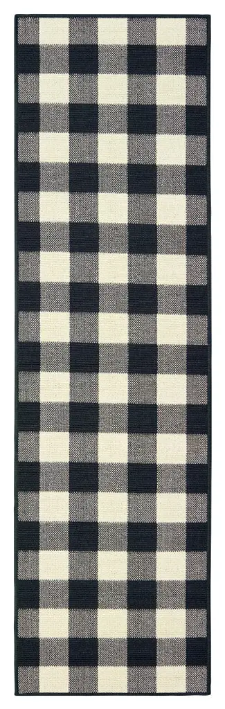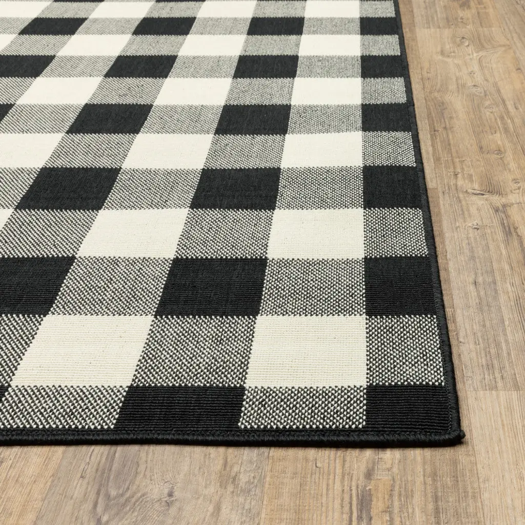 Martinique Gingham Check Black/ Ivory Indoor/outdoor Area Rug, 2'3"x7'6"